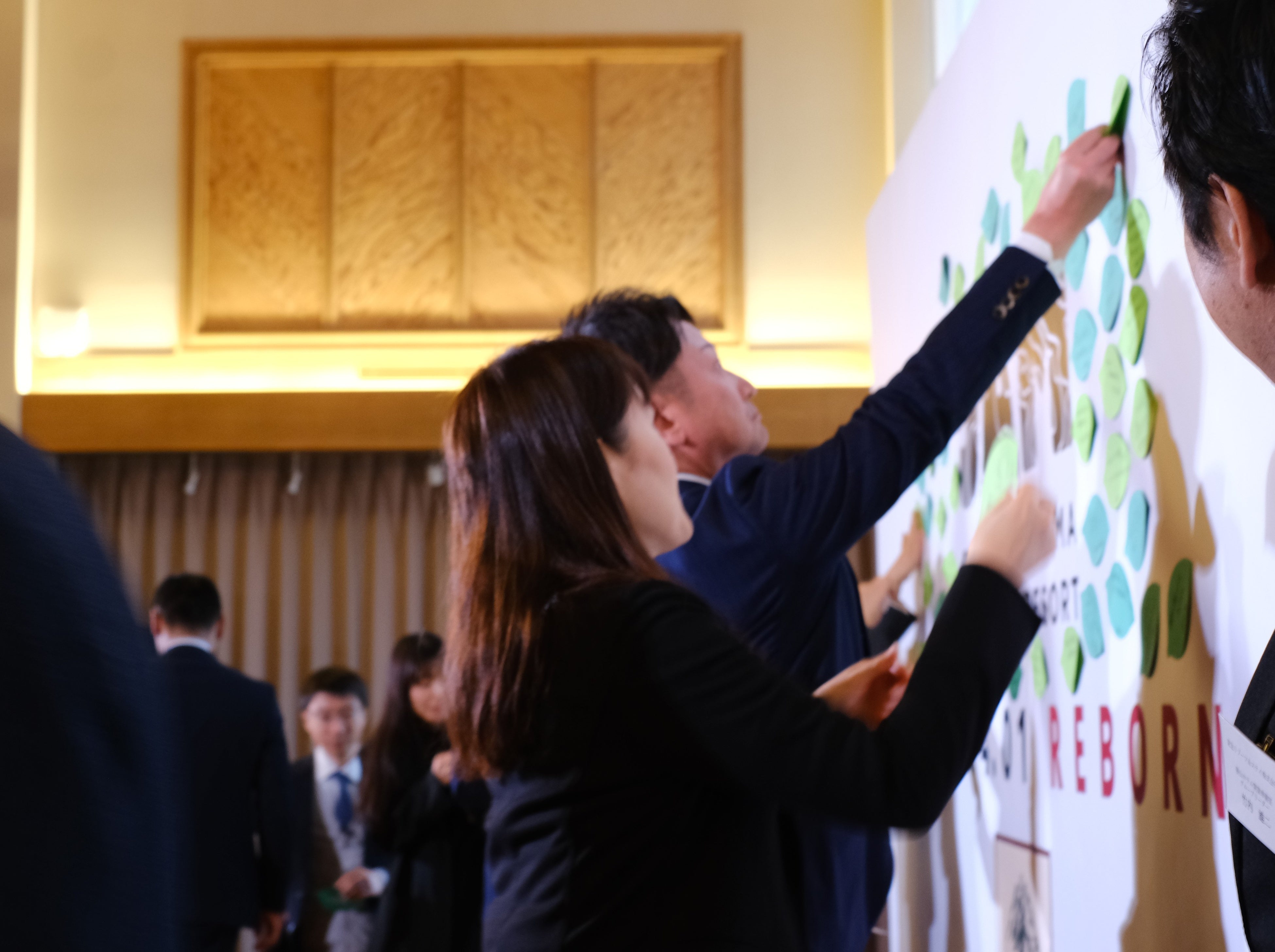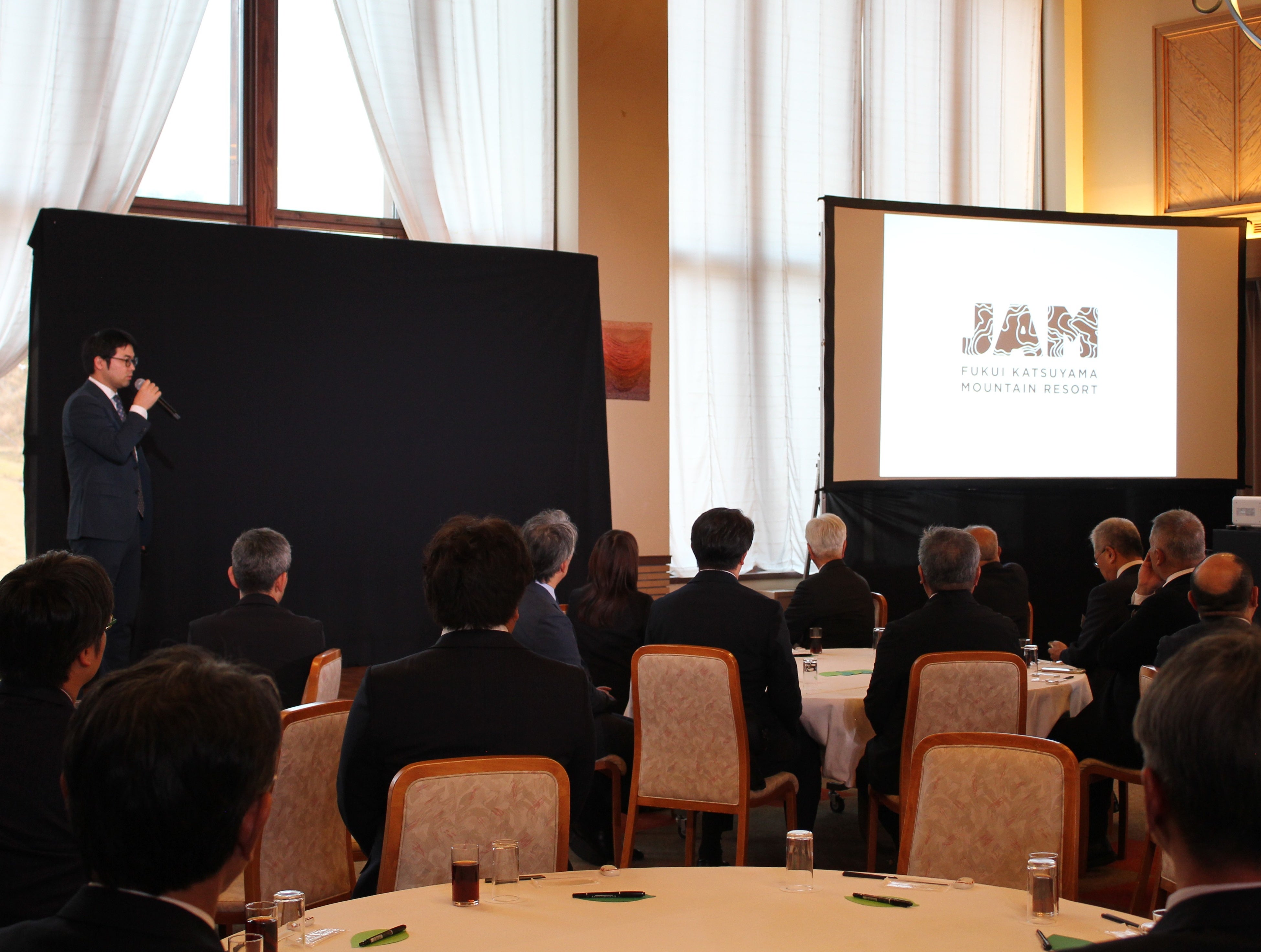 会場では参加者が“JAMでの思い出”や“今後の期待”を、葉の形のメッセージカードに記入し、新しいブランドロゴ入りの大きなボードに貼り付けるセレモニーも実施。今年の夏山リフトをご利用された水上市長からは「山頂からの夕陽最高でした。夏のリフト・ゲレンデ活用期待しています」、福井県立恐竜博物館 谷川館長からは「オールシーズン楽しめる恐竜博物館も共にがんばってまいります」、地域の事業者様からは「通年型リゾートで福井県の魅力の発信を期待しています」などと熱いメッセージをたくさんいただきました。