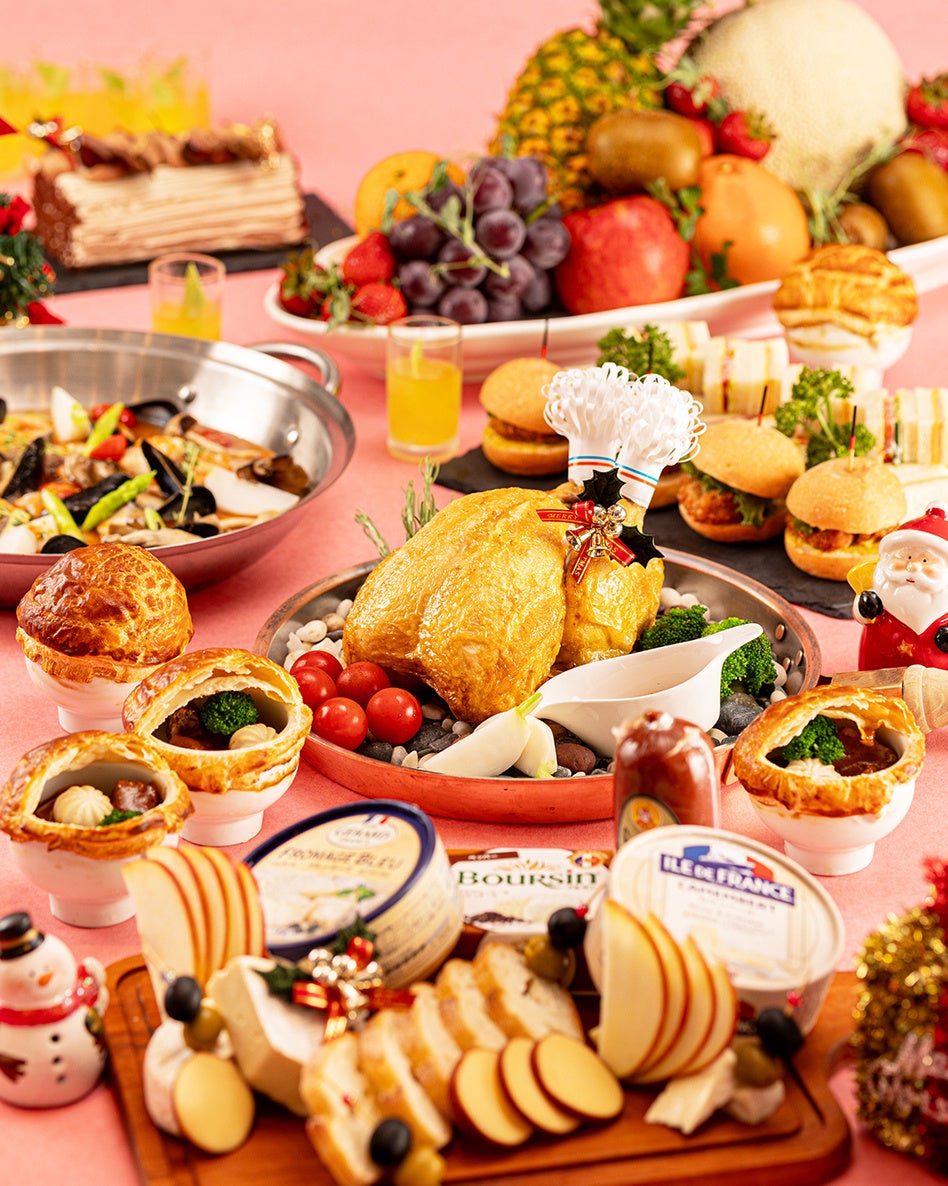 お子さまから大人まで楽しめる「ローストチキン」や「国産牛のブルゴーニュ風煮込みパイ包み焼き」などの食べ放題メニューに加え、「牛フィレ肉の鉄板焼き」をお一人につき一皿でご用意いたします。家族や仲間との忘れられないひとときを演出します。