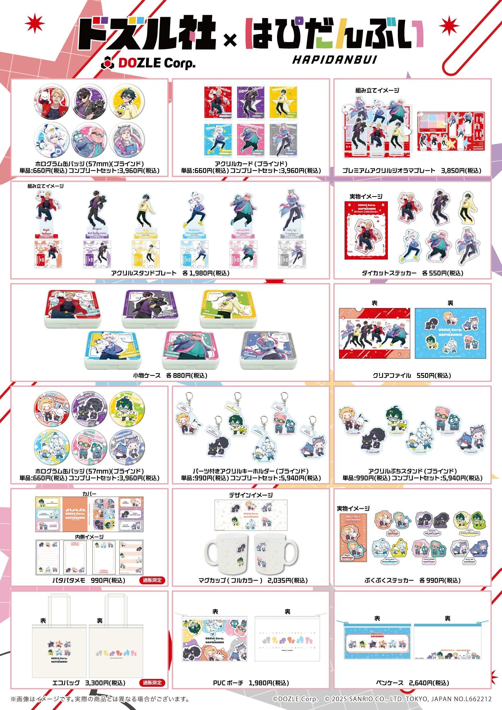 「ドズル社×はぴだんぶい」コラボグッズ一覧