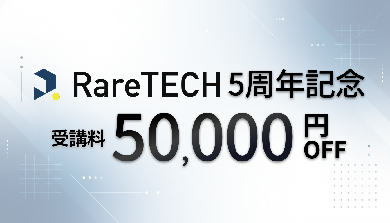 株式会社var(本社:東京都品川区、代表取締役:古里 栄識)が運営する、希少型エンジニア育成専門スクール「RareTECH(レアテック)」は、開校5周年を迎えました。これを記念し、2025年12月限定で受講料を5万円OFFとする特別キャンペーンを実施します。