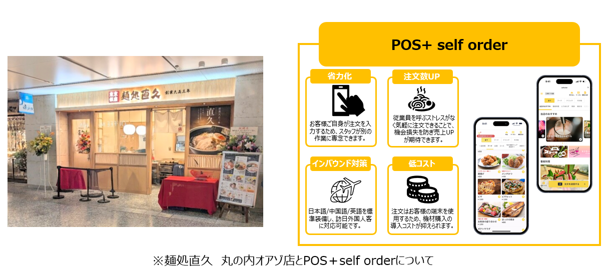 ポスタス株式会社(本社:東京都中央区、代表取締役社長:本田 興一、以下:ポスタス)は、株式会社直久(東京都目黒区、代表取締役社長:兒玉 智之)が展開する老舗らーめん店「銀座直久」の新店舗「麺処直久 丸の内オアゾ店」にて、飲食店向けPOSレジ「POS+ food(ポスタス フード)」のオプションサービス「POS+ self order」が2025年11月1日(土)のオープンと同時に運用開始したことをお知らせいたします。