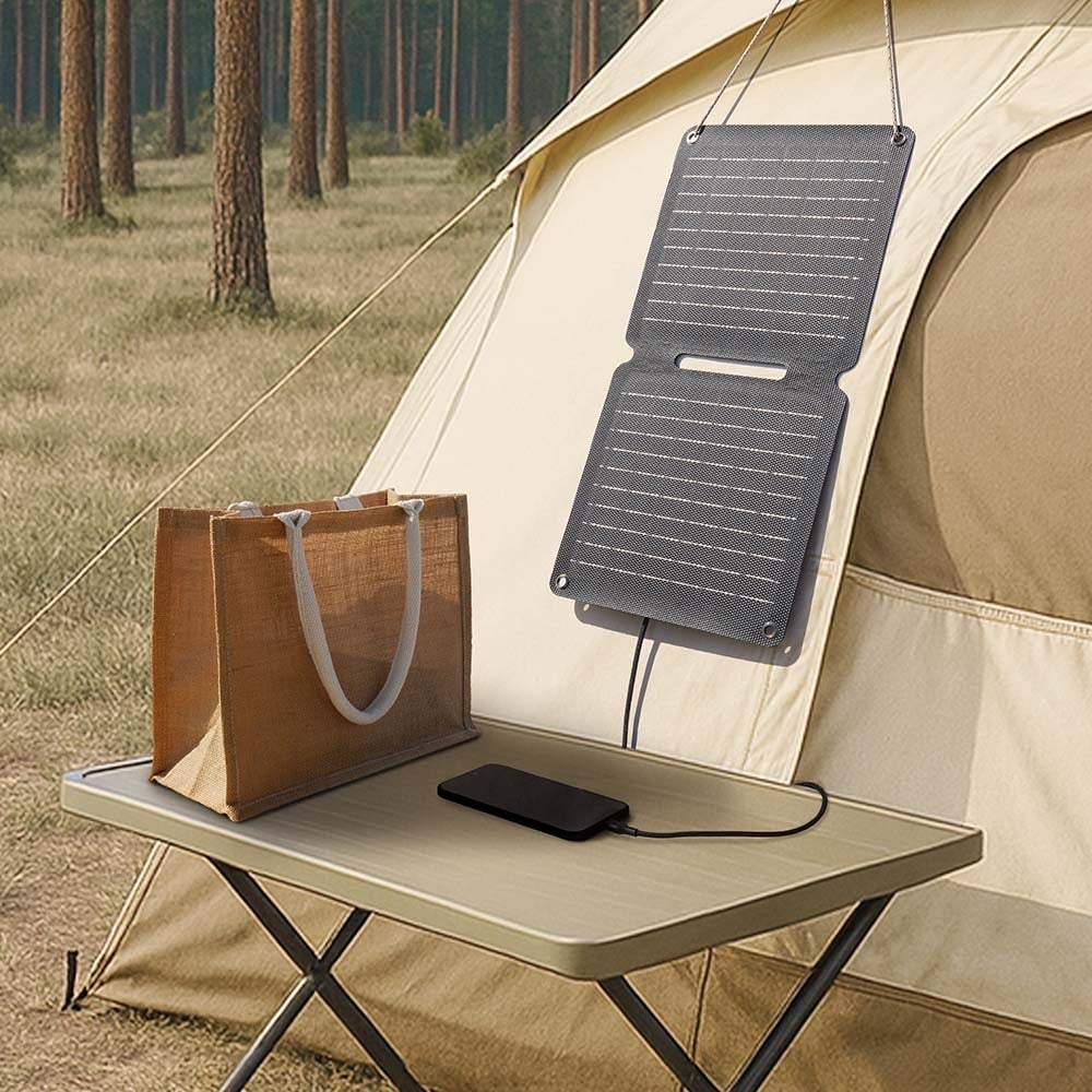 [画像2: https://prcdn.freetls.fastly.net/release_image/78302/258/78302-258-c5589f84fe34863b93bde666fadbf060-1000x1000.jpg?width=536&quality=85%2C75&format=jpeg&auto=webp&fit=bounds&bg-color=fff ]太陽光でスマートフォンを充電太陽の光を電力に変えて、スマートフォンなどのUSB機器を充電できるポータブルソーラーパネル充電器です。アウトドアや災害時など電源が無い場所でも太陽光があれば使用できます。