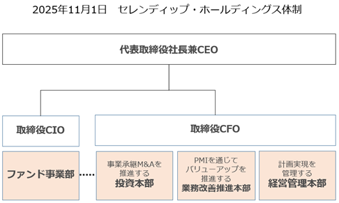 既存ファンド(「日本ものづくり事業承継基金 1 号投資事業有限責任組合」 以下、1 号組合)運営および 1 号組合に続く新たな 2 号組合の設立企画および運営を担うファンド事業部を新設します。