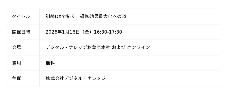 デジタル・ナレッジでは、このほかにも無料セミナーを随時開催しております皆様のご参加、お待ちしております
