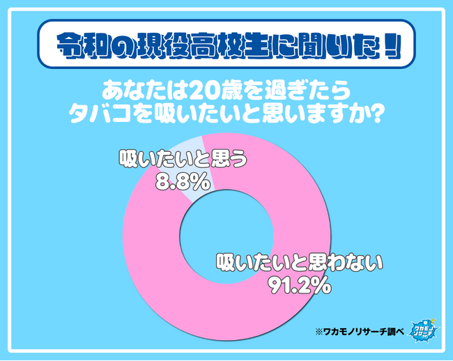 91.2%の現役高校生が「吸いたいと思わない」ことがわかりました。