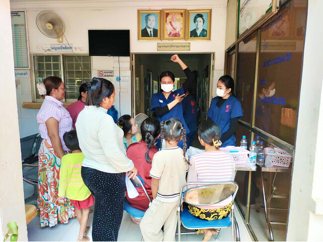 当日は、専門医である堀医師を中心に、日本人・カンボジア人の医師や看護師、超音波技師からなるチームがポンネルー地区の連携ヘルスセンターに入り、現地で広報を行いながら二日間実施。検診とセルフチェックレクチャーを行い、両日で計80名が受診しました。