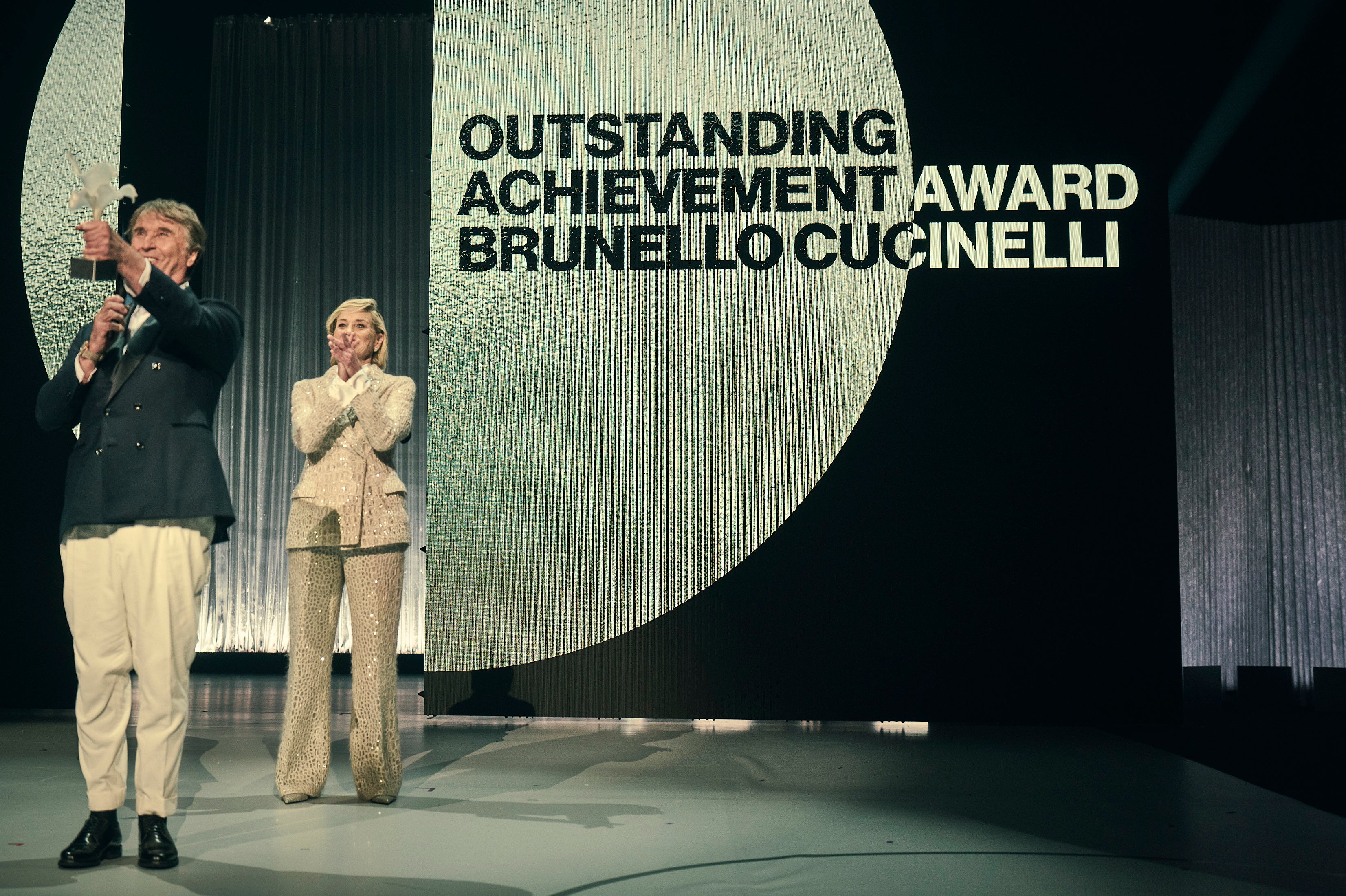 ロンドンのロイヤル・アルバート・ホールにて、ソロメオを拠点とするデザイナーが「より責任あるビジネス手法の先駆者」としてシャロン・ストーン氏より特別功労賞を受賞