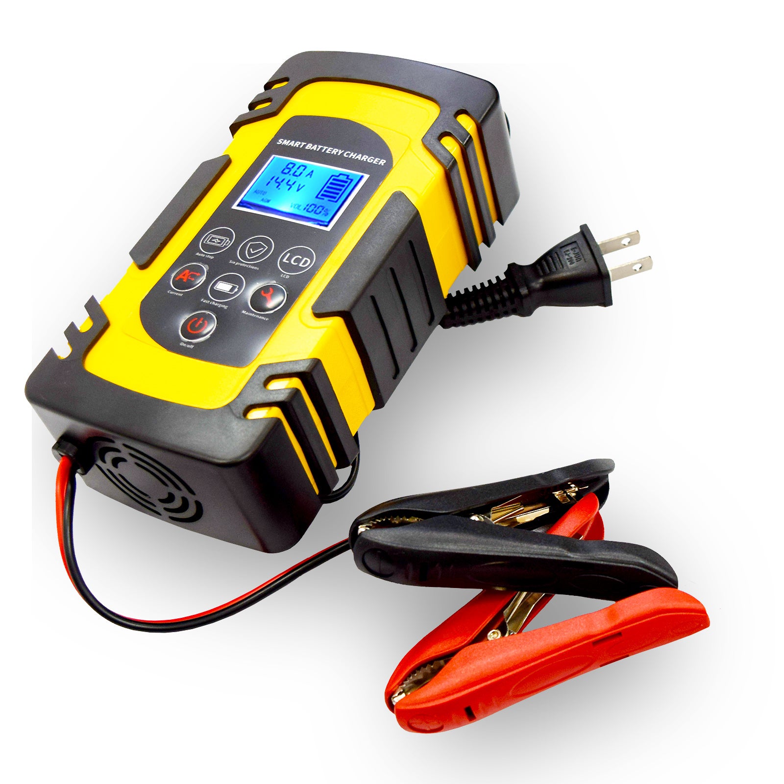最大12V/8Aの出力電流を備え、効率的な定電流定電圧のオート充電方式を採用。現在の電圧、電流、充電モード、バッテリー残量などがシンプル液晶ディスプレイに表示されるため、誰でも簡単にバッテリーの状態を確認しながら操作できます。