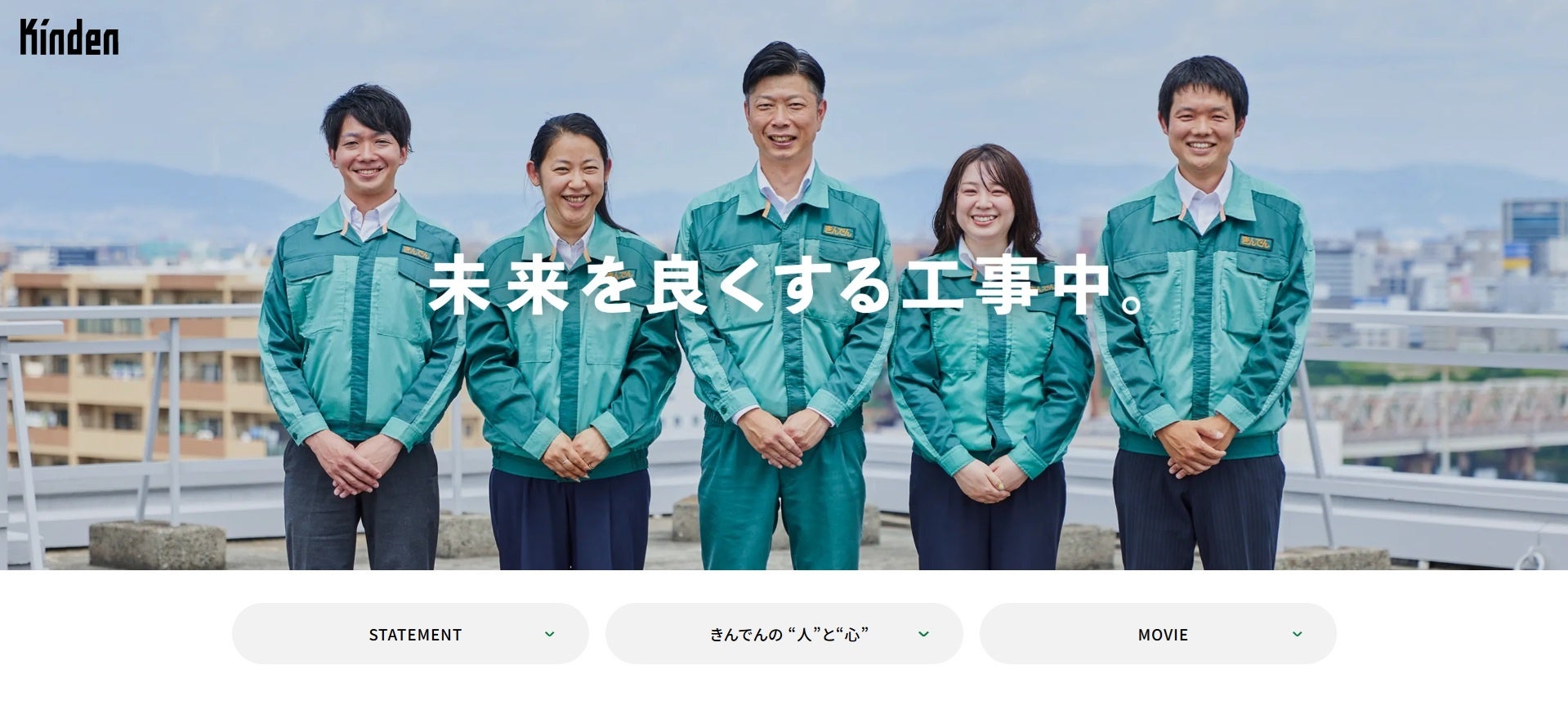 当社は、コーポレートスローガン「未来を良くする工事中。」およびステートメントを分かりやすく紹介するブランドサイトを、今回のCM公開に合わせてコンテンツを増やしリニューアルしました。これまで公開していたコーポレートスローガンと活き活きと活躍する当社社員の写真、ブランドムービーに加え、「きんでんの“人”と“心”」と題し、当社社員の生の声を聞いたインタビュー記事と動画のページを設けた他、各種CMやCMメイキング動画を追加。今後も随時インタビュー記事を追加していく予定となっています。是非ご覧ください。