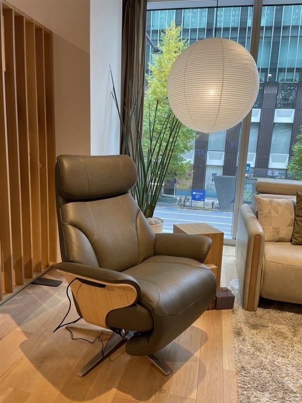 操作性:指一本で直感操作。電動3モーターが背もたれ・シート・フットレストを独立調整。右ひじの下にリモコン設置