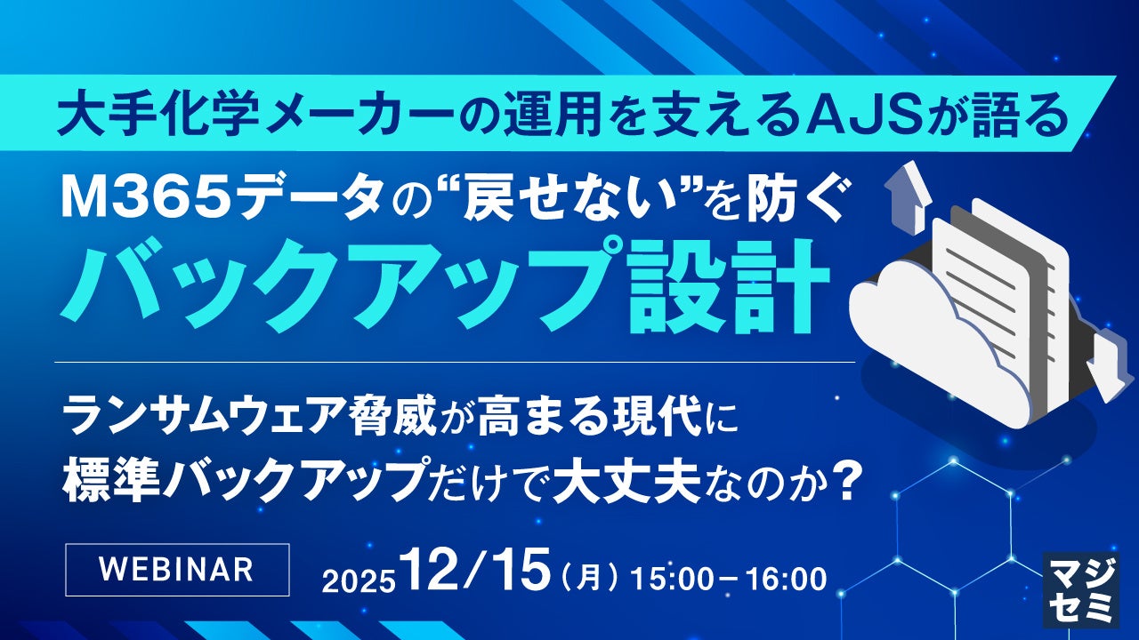 マジセミ株式会社は「大手化学メーカーの運用を支えるAJSが語る、M365データの“戻せない”を防ぐバックアップ設計」というテーマのウェビナーを開催します。