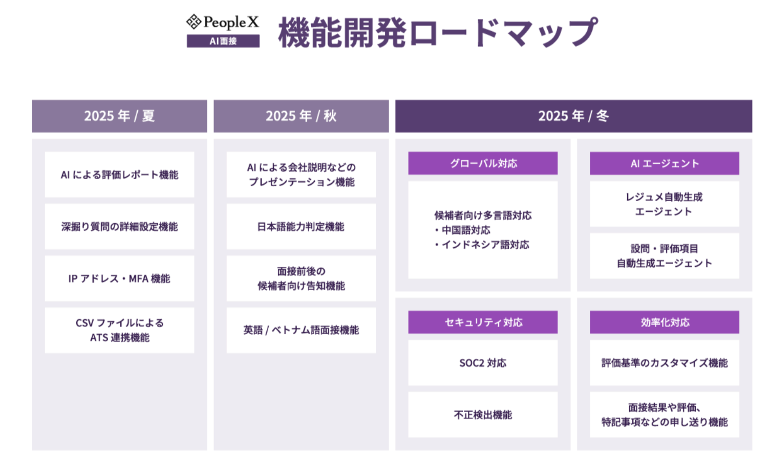 「PeopleX AI面接」機能開発ロードマップ