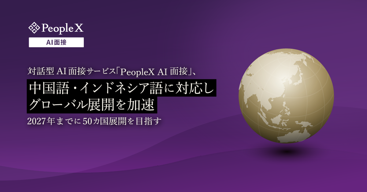 現在、中国やインドネシアなどのアジア諸国は、経済成長と所得増加に伴い、日系企業にとって重要なビジネス拠点となっています。現地での事業拡大には、語学力や文化的背景を理解した現地人材の獲得が不可欠ですが、グローバル企業との人材獲得競争は年々激化しています。 そこで当社は、各国の求職者が母国語でストレスなく受験できる「PeopleX AI面接」の提供地域を拡大します。これにより、言語の壁による機会損失を防ぎ、書類だけでは見えない候補者の「人となり」やポテンシャルを可視化することが可能となります。