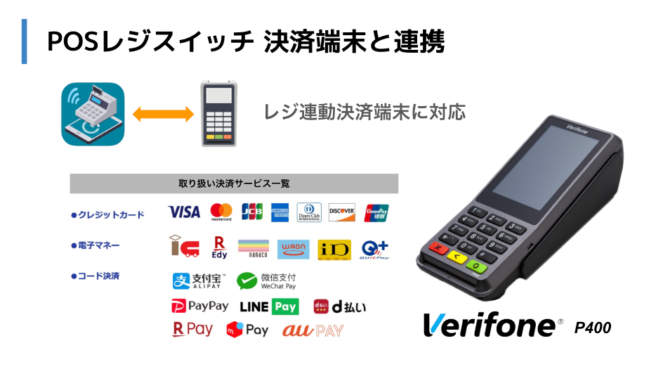 この度、POSレジSWITCHにおいて、決済端末連携がスタートしました。この連携により、従来の現金管理、在庫連動、免税手続きといった機能に加え、販売業務における決済手段が拡充され、店舗のDXをさらに加速させます。