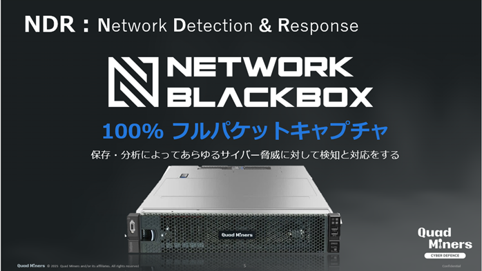 株式会社クワッドマイナージャパンは(本社:東京都千代田区)は、国内総代理店である株式会社フーバーブレインより、当社のNDRソリューション「Network Blackbox」を活用したセキュリティ診断サービス「Secure X-Ray」に関するプレスリリースが発表されましたので、お知らせいたします。