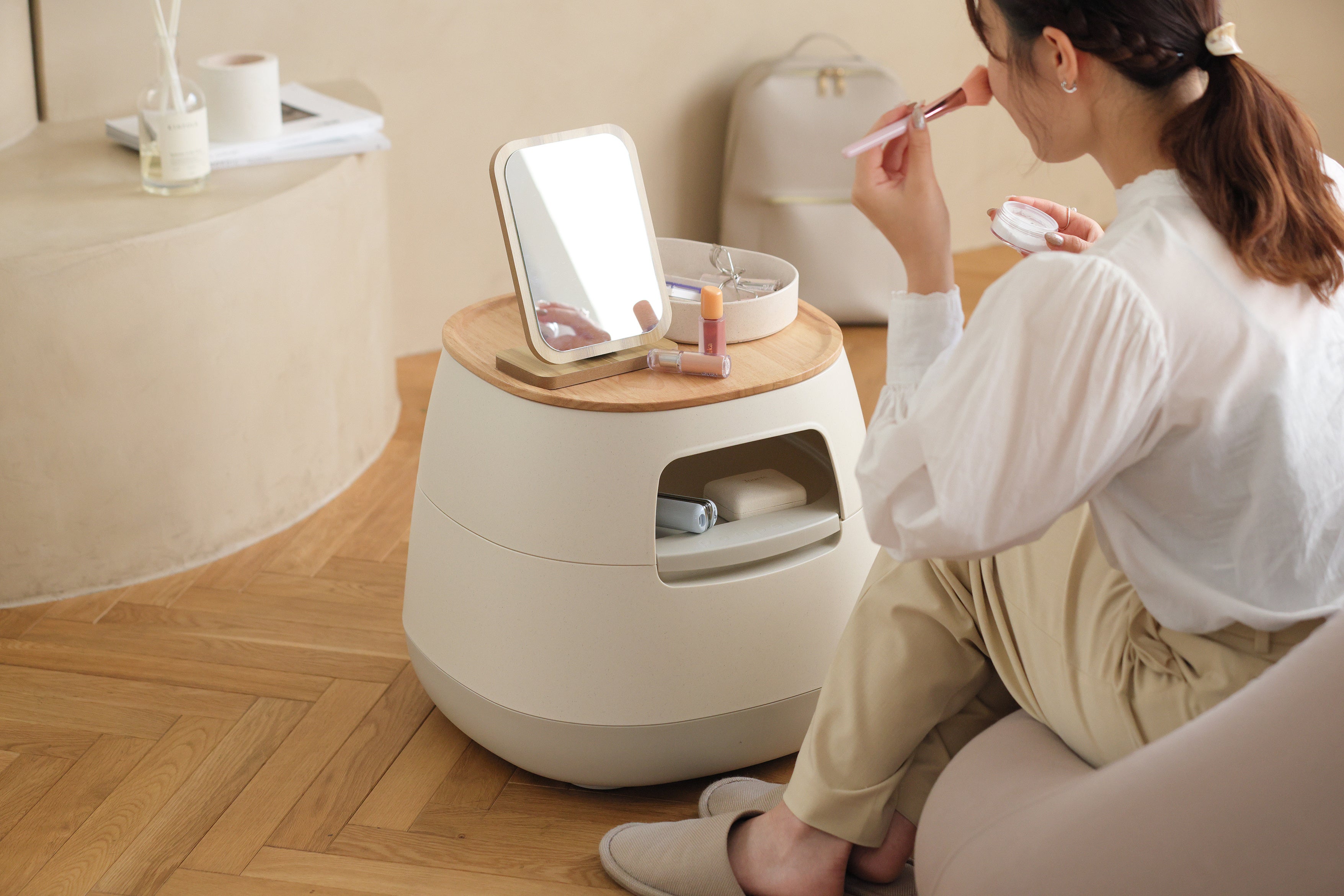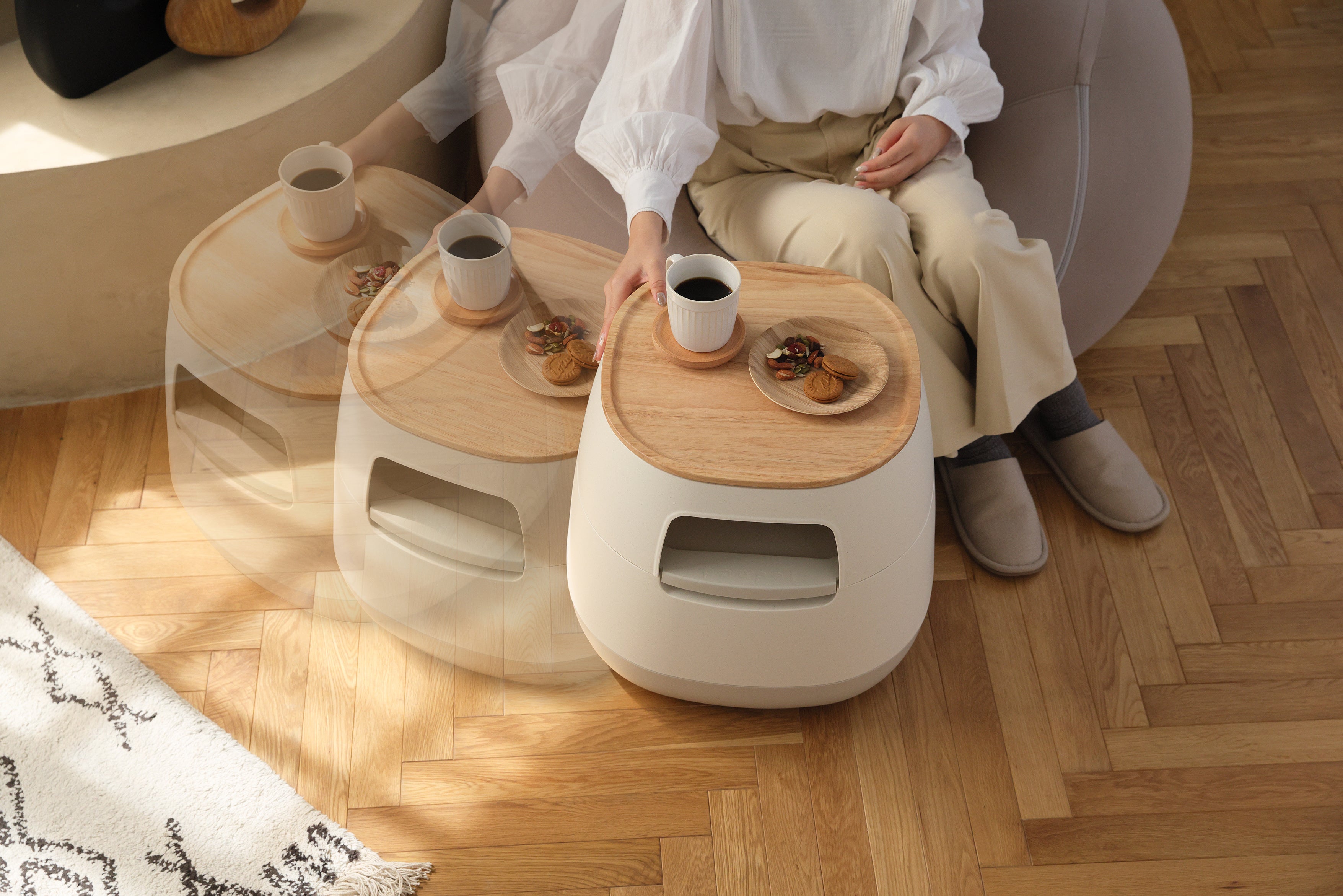 これらの調査結果をもとに、くつろぎながら自然な動線で使えるローテーブルとして 「動かせるくつろぎ収納ローテーブル」を開発しました。ロースタイルの暮らしに寄り添い、テーブル兼収納家具として、リビング空間に“余白と快適さ”を生むインテリアとしてお使いいただけます。