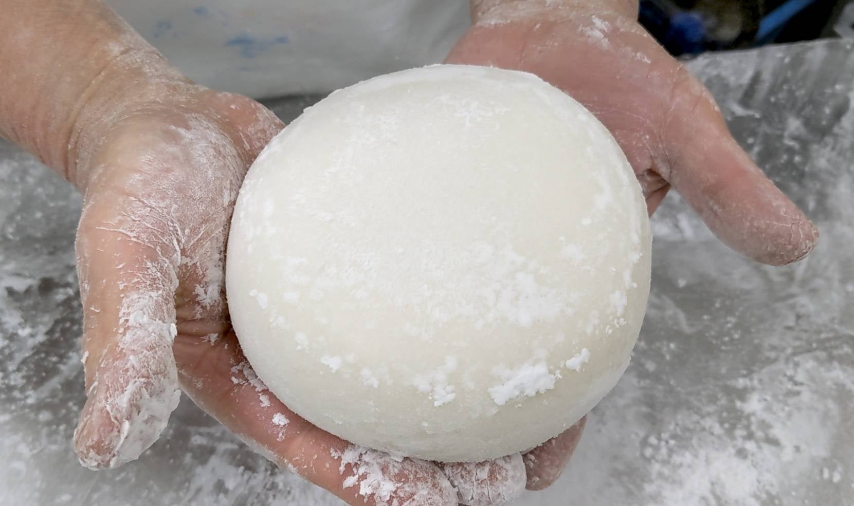 木のセイロで蒸し、杵でつき、手で丸める--
