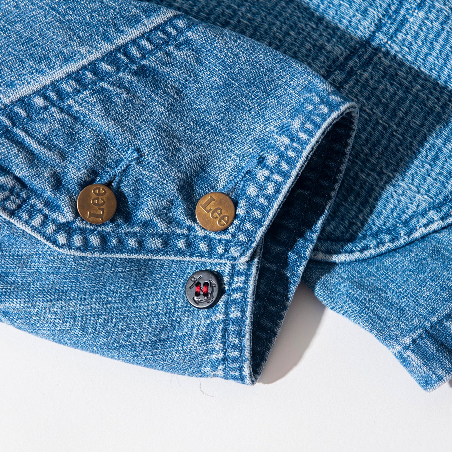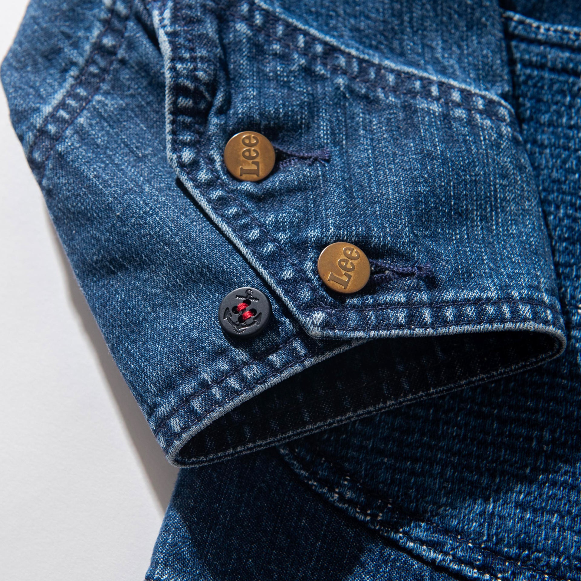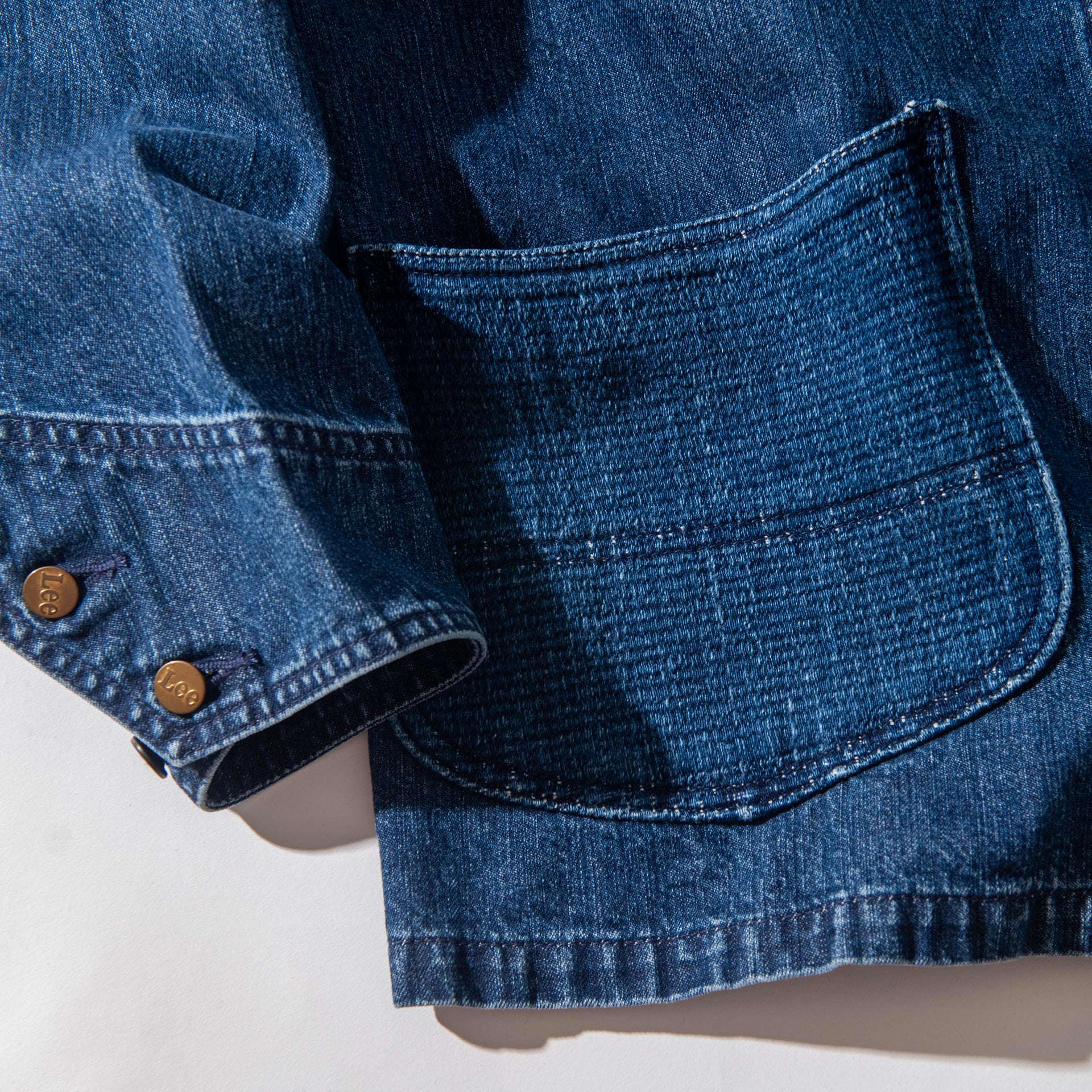 ボディには強撚糸を用いた 10.5oz の〈Lee〉オリジナル「JELT DENIM」を使用。襟とポケットには〈BLUE BLUE〉オリジナルのフロージャカードデニムを配し、異素材の切り替えが際立つ力強い表情に仕上げました。背裏には両ブランドのタグを配し、別注ならではの特別感を際立たせています。