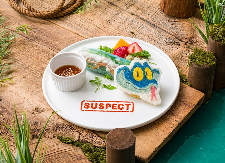 指名手配犯のヘビのゲイリーをイメージした生春巻きのプレート。
