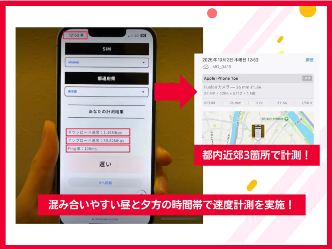 独自調査の結果は一覧でまとめられており、実測データを比較して格安SIM選びの参考にできます。