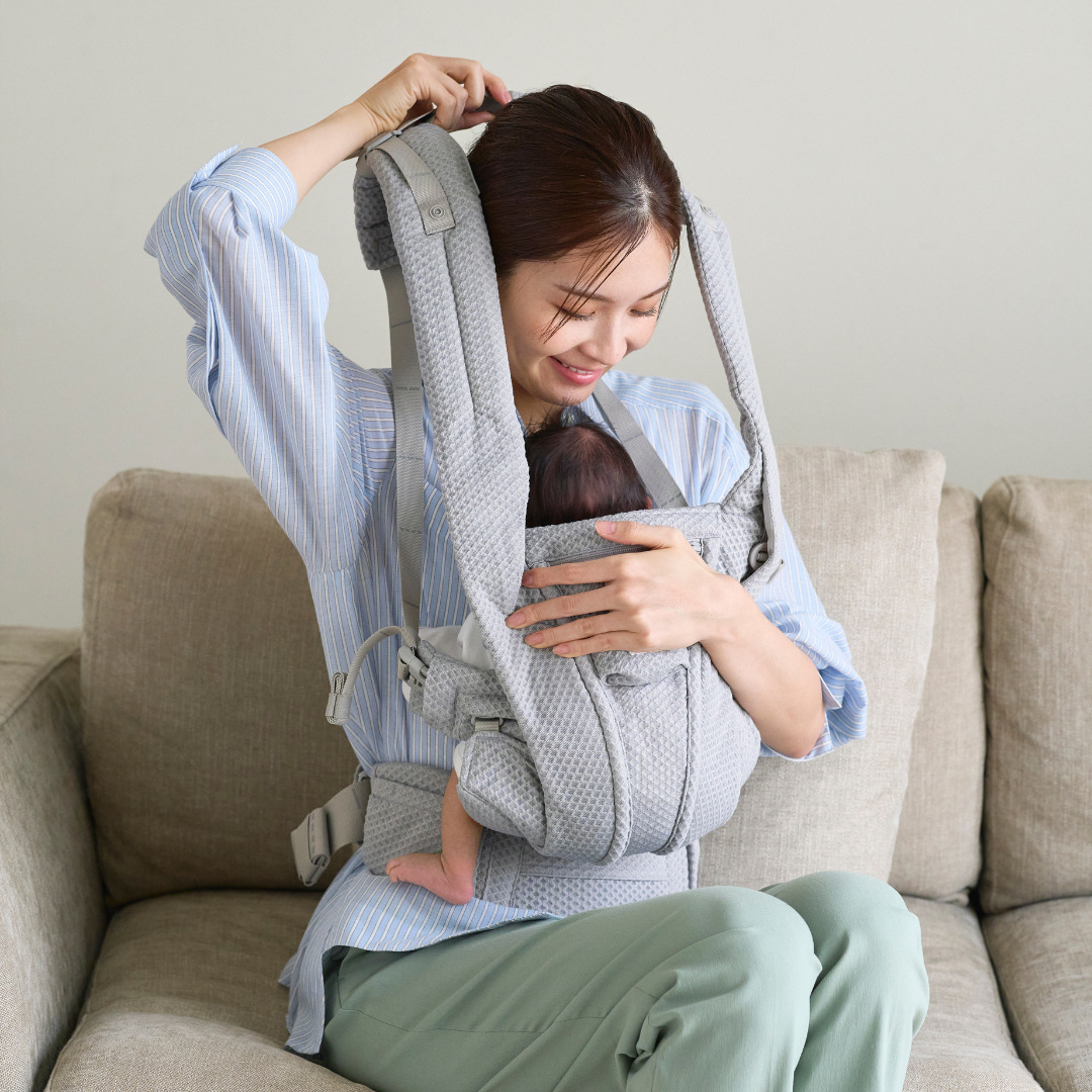 抱っこひもにまだ慣れていない方、背中に手を回しにくい方にもおすすめの装着方法として、バックルを体の前側で留める「バックル前留め」の装着を動画等でご案内しています。このほかにも装着やお手入れに関する情報は、ブランド公式Instagramで発信しております。情報をご活用いただき、毎日の抱っこライフをさらに快適にお過ごしください。ブランド公式Instagram