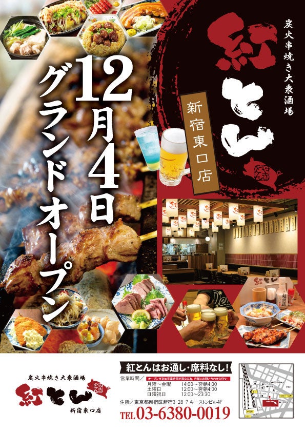 株式会社ヴィア・ホールディングスの子会社、東京都心を中心に炭火串焼き専門店「日本橋紅とん」を展開する株式会社紅とん(東京都新宿区 代表:楠元健一郎)が新宿駅東口に、世代を超えて“気軽に集まれる場所”を目指し、紅色の豚が躍動するロゴマークを掲げた新店舗をオープンいたします。