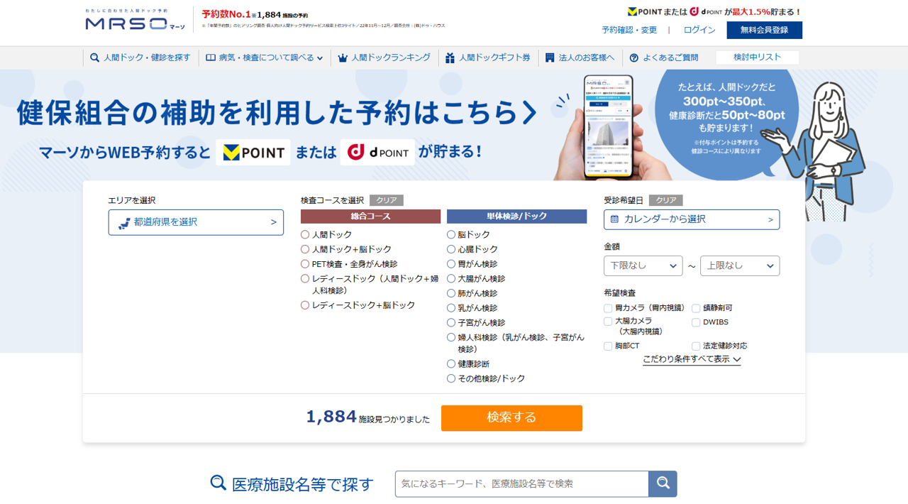 人間ドック・健診予約サイト「MRSO.jp(マーソ)」
