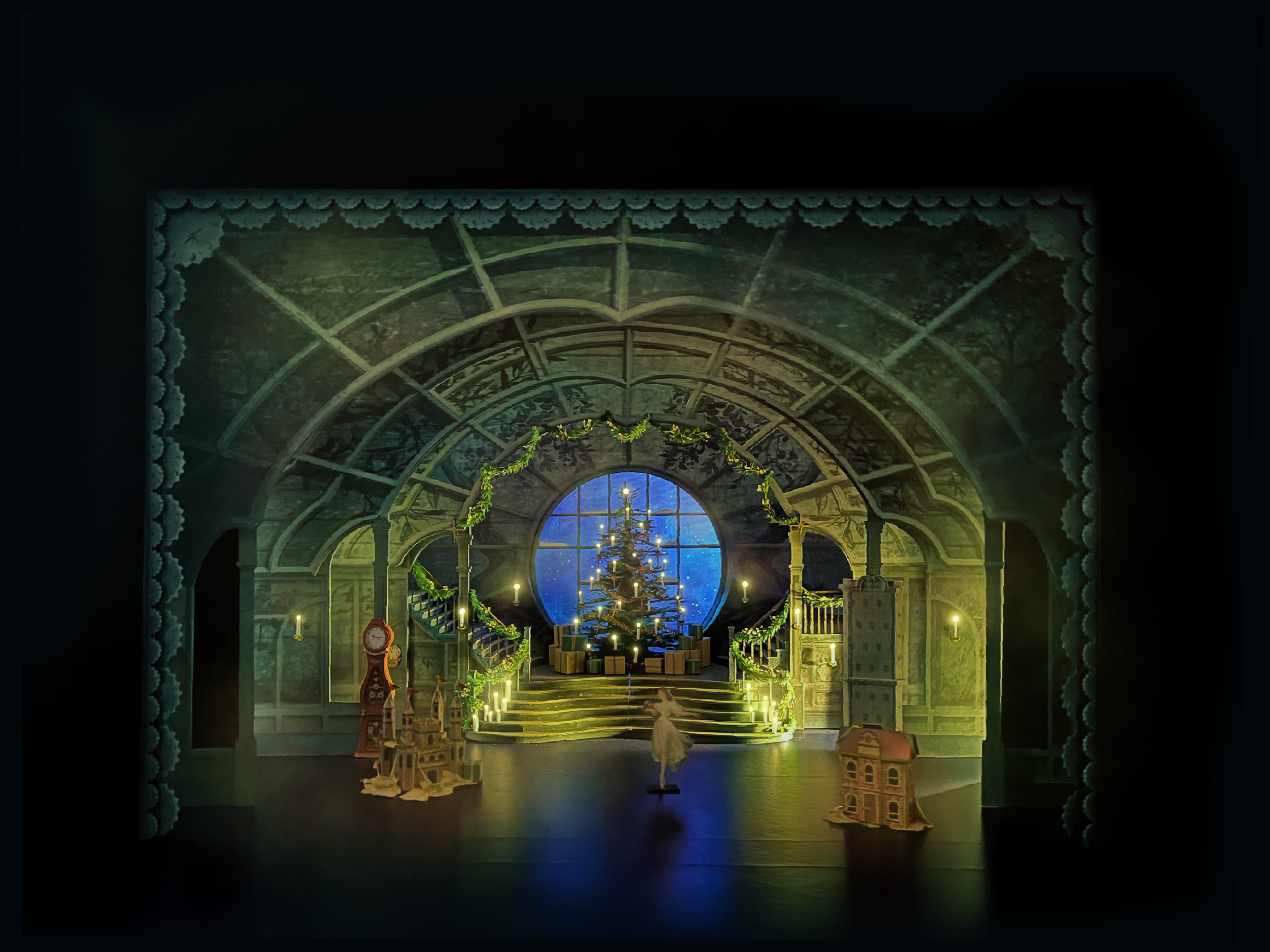 深夜、クララが人形を確認しに行くと大きなネズミたちに襲われます。ドロッセルマイヤーが現れ、魔法で部屋を変えると、巨大なクリスマスツリーの下でネズミ軍とくるみ割り人形率いる兵隊たちの戦いが始まります。ついにくるみ割り人形とクララが戦いに勝利すると、ドロッセルマイヤーはくるみ割り人形を王子に変えます。