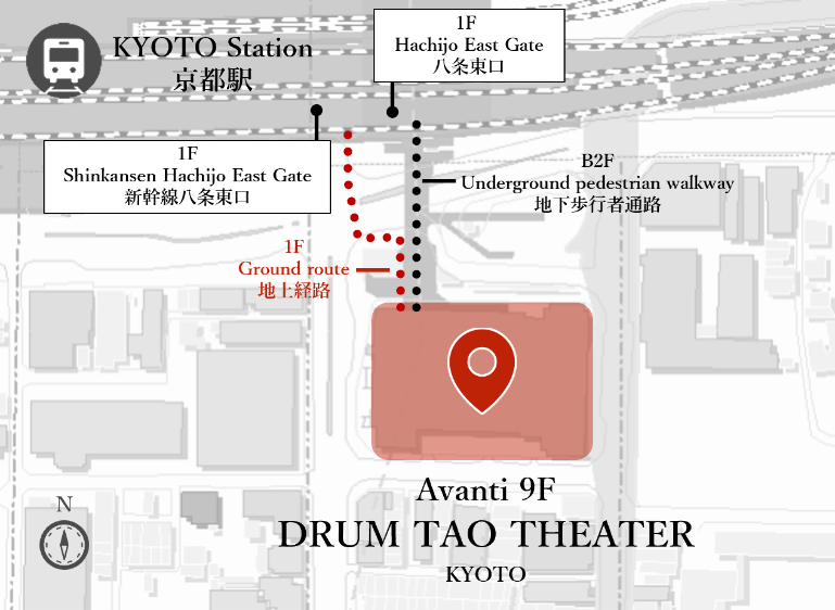 野村不動産が、JR京都駅八条口よりすぐの施設アバンティビル内のホールを取得。常設劇場として、演出設計とロングラン公演により、京都を訪れる方々が『DRUM TAO』の世界観に没入できる環境を整えております。本劇場を通じて、日本を代表する新しいエンターテインメントを国内外に発信し、京都の夜観光の魅力向上と地域活性化に貢献してまいります。