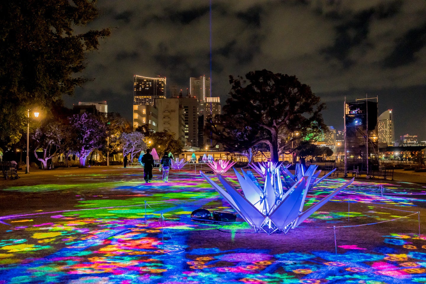 横浜都心臨海部を活かした壮大な演出で評価を重ねてきたPixelEngineは、3年目を迎える今年も〈ヨルノヨ2025〉の全体クリエイティブを担い、横浜の夜景の進化につながる演出を実現しました。今年のテーマは 「花」。最大の見どころである、街全体が光と音で躍動する5分間のスペクタクルショー“ハイライト・オブ・ヨコハマ”は、過去最大の参加46施設 が音楽に合わせて光り輝き、3kmに及ぶ圧巻の光景を描き出します。また大さん橋会場では、国内最大級の参加型屋外プロジェクションマッピング「クジランド」がさらに進化。象徴的な25mの“光のくじら”が雄大に泳ぎ、大さん橋屋上全体が光に包まれる没入型体験を創出します。さらに山下公園では、観客の動きに反応する不思議な光のインタラクティブ・デジタルアートが全長250mにわたって展開。花をモチーフにした《スターフラワー》《スターツリー》を中心に、庭園全体が光で満ちる幻想的な空間が広がります。加えて今年は、横浜赤レンガ倉庫とコラボレーションした新エリア「Christmas Gate」や、映画『アバター:ファイヤー・アンド・アッシュ』との連携など、横浜全体を巻き込んだ大規模企画も加わり、より一体感のある光の体験が生まれています。2会場におけるプロジェクションマッピングを中心に、合計100台以上のプロジェクター、1500台以上の照明器具を使用して展開される、日本最大級のイルミネーションイベントです。