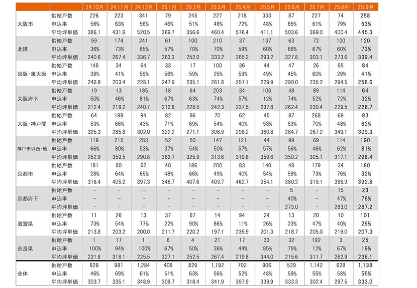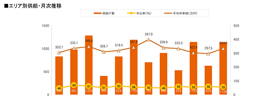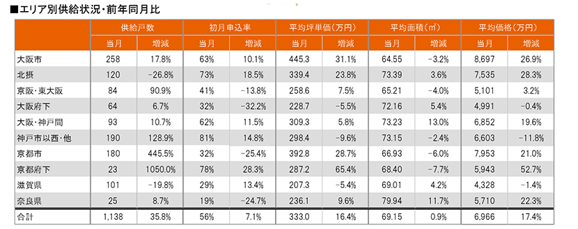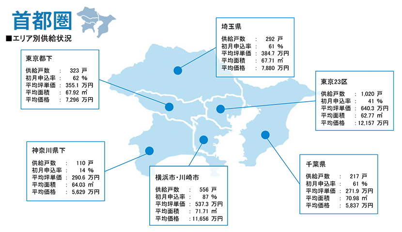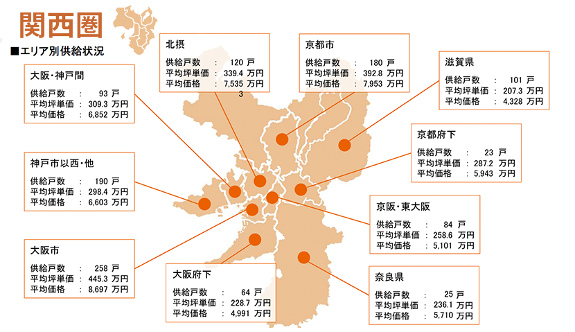 集計対象エリアは首都圏及び関西で、それぞれのエリア別相場情報、需給動向、着工件数等を集計しました。