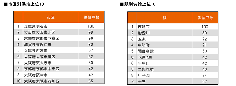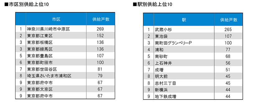 また、市区別、駅別の供給ランキング等も算出しました。