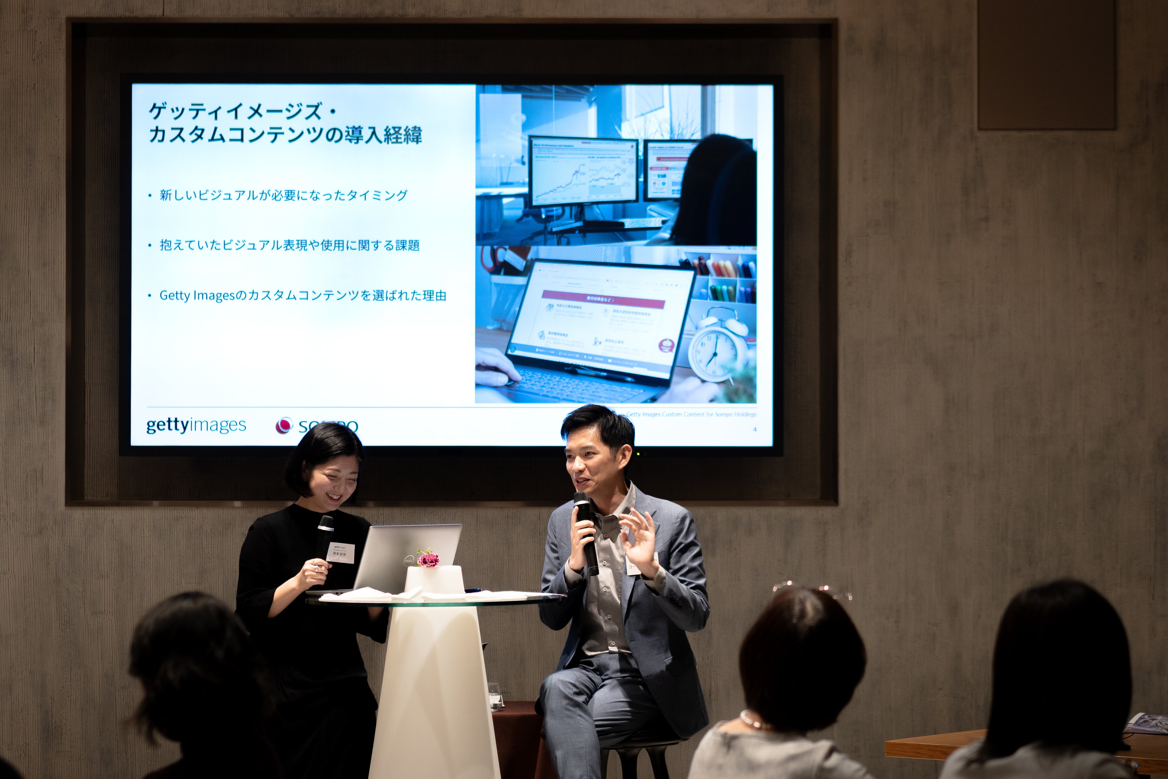 第二回目の今回は、「ブランドが求めるコンテンツの動向と、消費者との信頼構築のためのチャンス」をテーマに、ゲッティイメージズ クリエイティブインサイツディレクターのケイト・ルークと APAC カスタムコンテンツマネージャーの岸本 紗奈が登壇し、ブランドのコンテンツ制作における動向や、コンテンツチームによる最新のリサーチ結果を紹介しました。また後半にはゲストスピーカーとして、SOMPO ホールディングス株式会社 広報部 ブランド・コミュニケーショングループ コンテンツマーケティングリードのゴー・エイドリアン・ロビン氏が登壇し、同社のブランディングにおけるビジュアル活用例を紹介しました。