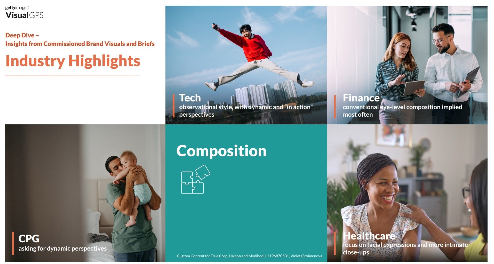 ゲッティイメージズでは、事前に撮影されたストック写真や動画以外に、ブランドや代理店向けのコンテンツ制作「カスタムコンテンツ」を提供しています。ブランドごとのニーズに応じて、ブランド独自の写真や動画を、スピーディーかつコスト効率よく制作できるとともに、ブランドの商品を撮影に組み込むことも可能です。これにより、ブランドがどのようなビジュアルを求めているのかをリアルタイムで把握することができます。さらに、ゲッティイメージズの消費者ビジュアル調査「VisualGPS」の結果を掛け合わせることで、ビジュアル表現がブランディングに影響を与える要素が明らかになっています。