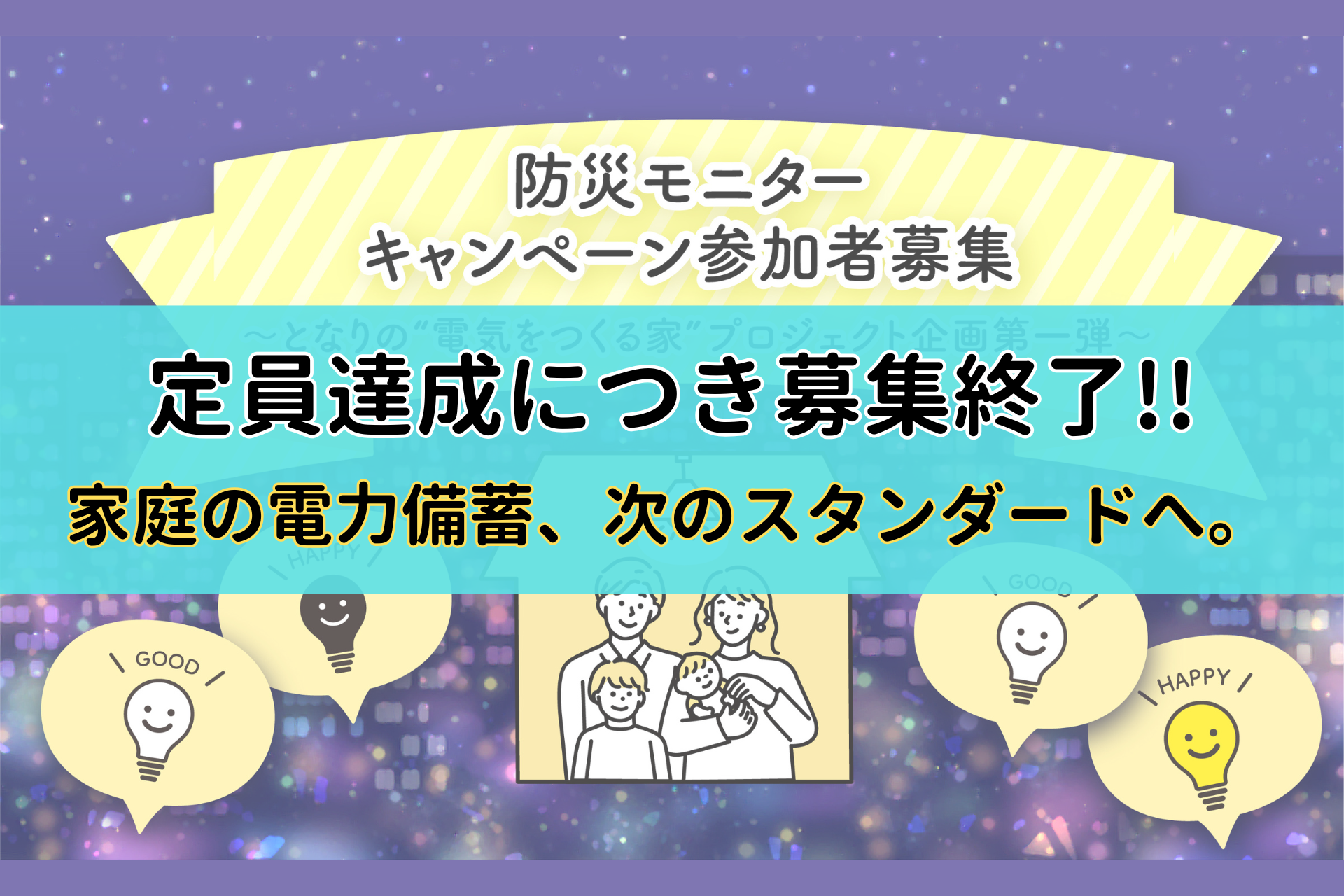 業界歴14年、8,000件の太陽光・蓄電池の設置を手掛ける石川企画合同会社(本社:茨城県常総市、代表:石川 聡)は、2025年9月より展開している【となりの“電気をつくる家”プロジェクト】における「電力防災モニターキャンペーン」について、定員達成に伴い募集を終了したことをお知らせいたします。全国から多数のお問い合わせ・ご関心をいただき、厚く御礼申し上げます。