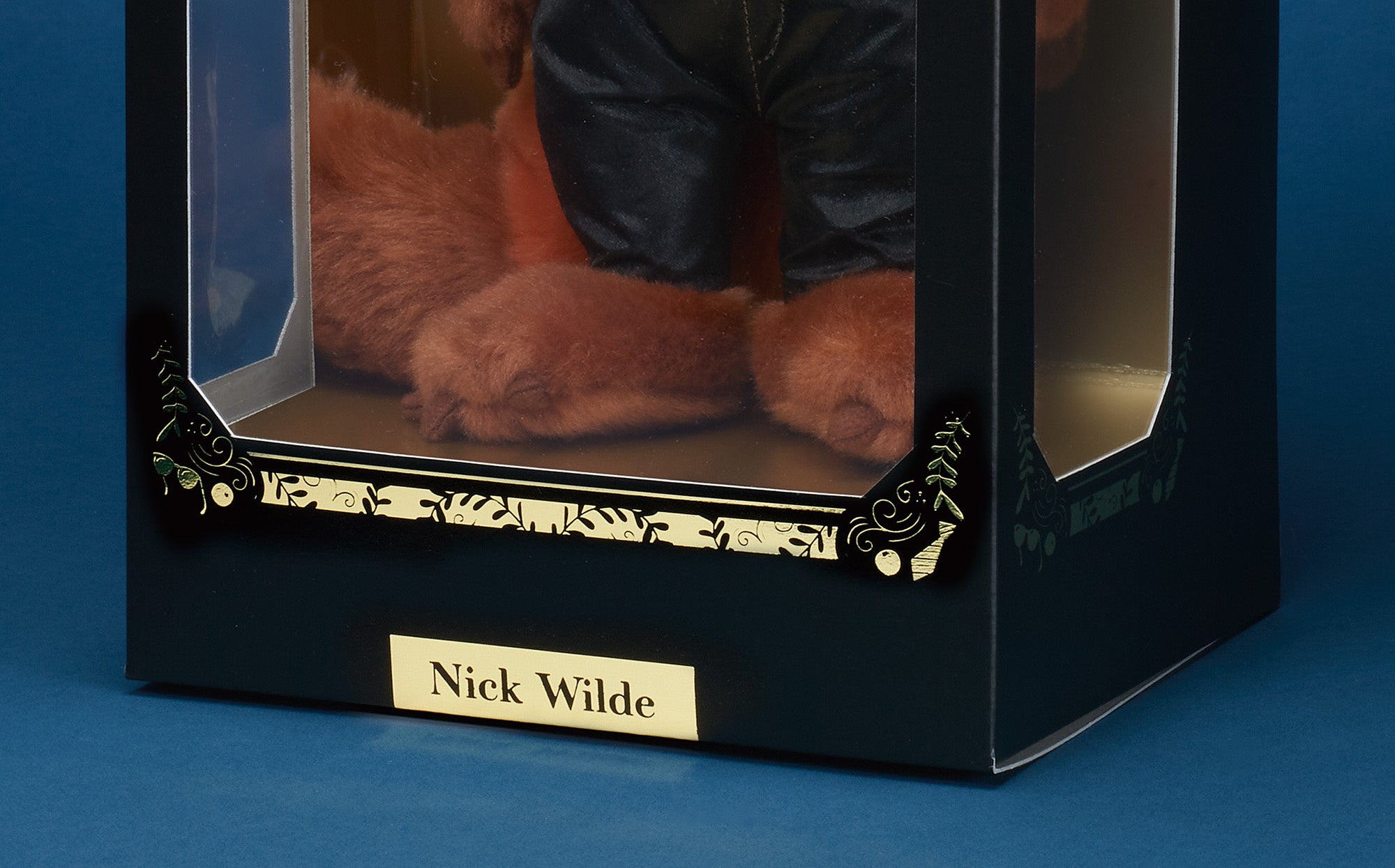 背面には「ニック・ワイルド」の姿を箔押しで施しており、パッケージ全体を通して作品の魅力が感じられる仕上がりです。また、ウインドウ付きパッケージのため、購入後すぐに飾って楽しめるディスプレイ性も兼ね備えており、箱を開ける前から満足感を得られるデザインを目指しました。