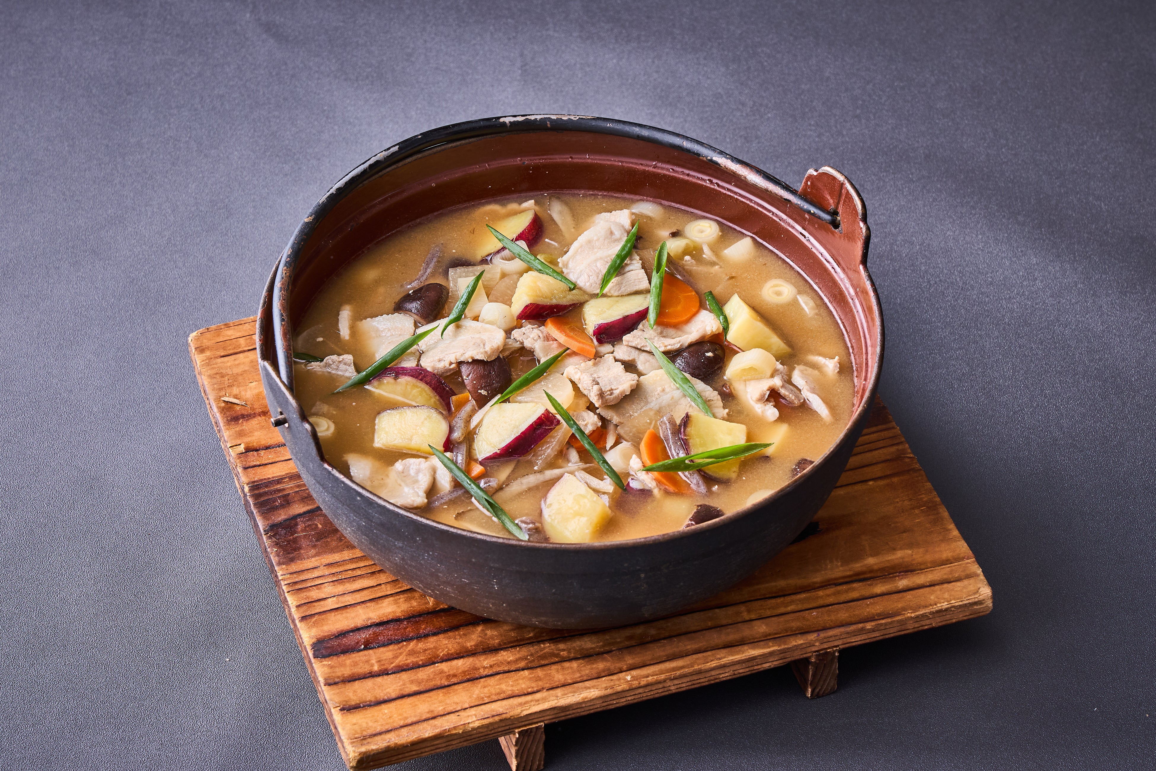 日本料理からは、石川県の郷土料理「めった汁」をご用意いたします。石川県産「五郎島金時」、大根、人参などの根菜類にこんにゃくや長葱を加えた、具だくさんで心も体も温まる、食べ応え満点の一品です。