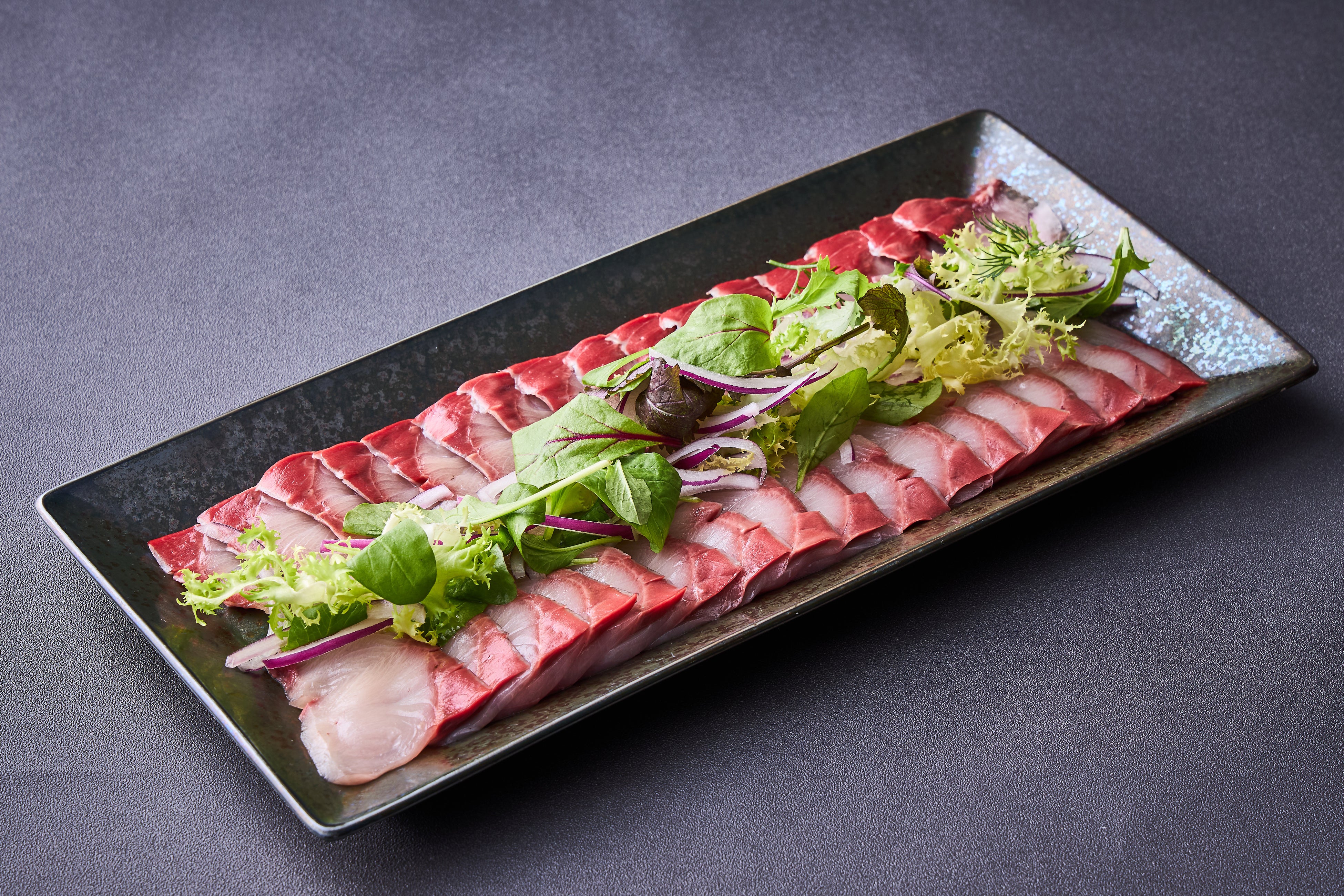 西洋料理からは、冬場に脂が乗って旨みが増す高級魚「石川県産寒ブリ」を使ったカルパッチョをご賞味ください。赤と白のコントラストが美しく華やかな一皿で、スモークソルトとオリーブオイルが寒ブリの濃厚な旨みを引き立てます。また、福井県を代表するソウルフード「ボルガライス」もお楽しみいただけます。ふんわりオムライスの上にカリッと揚げたトンカツを乗せ、奥深い味わいのシェフ特製「ビーフストロガノフ」をたっぷりとかけてお召し上がりください。ひと口ごとに、さまざまな食感と味わいが広がる満足感あふれる一品です。