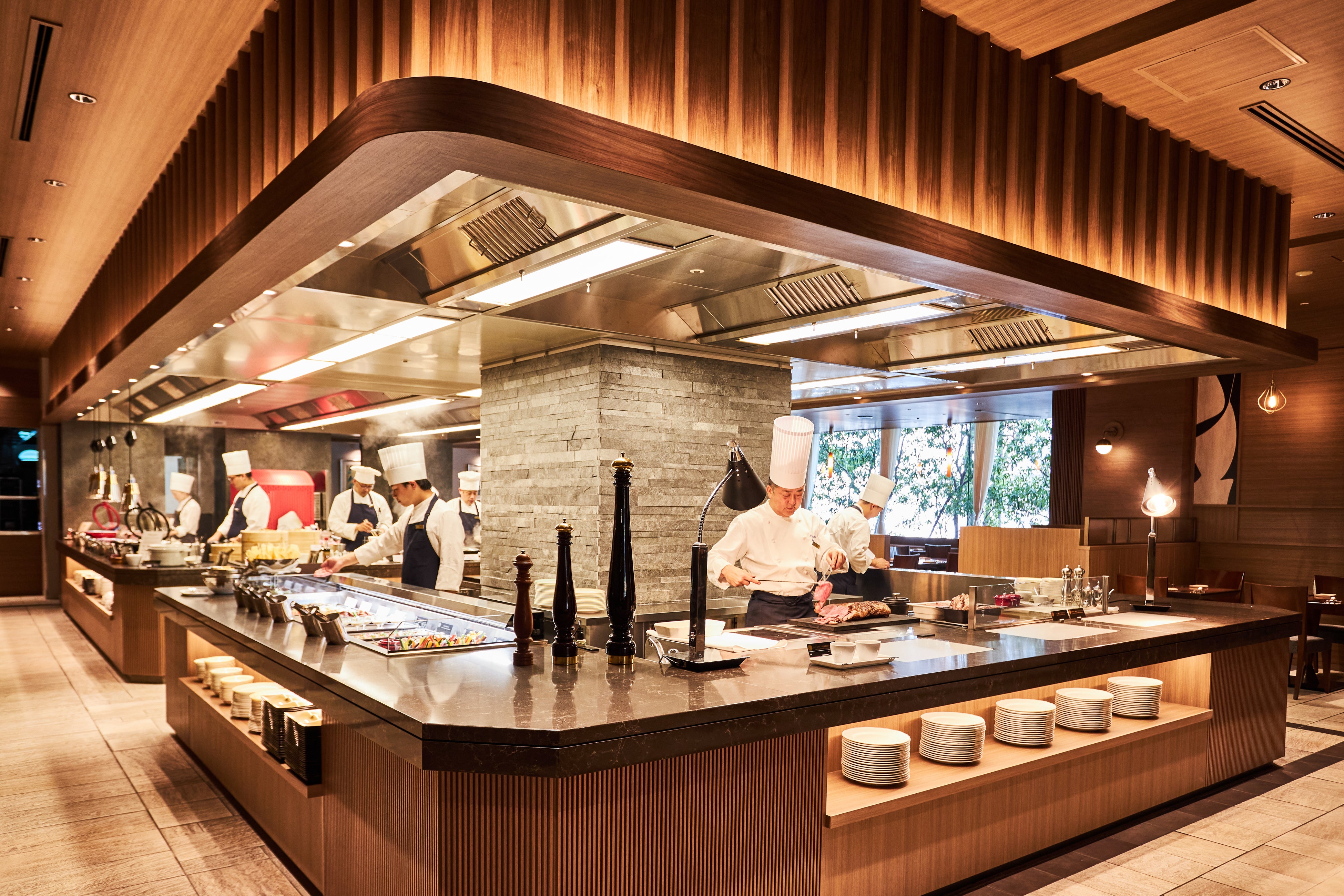 1F オールデイダイニング「クロスダイン」和・洋・中の専門シェフによる本格料理と豊富な品揃えを誇るビュッフェ主体のレストラン。ライブ感溢れるオープンキッチンから出来たての料理をお出しします。木の暖かみと開放的な空気が漂う心地よい空間を、シーンに合わせて利用できるように、様々なスタイルのお席をご用意いたします。