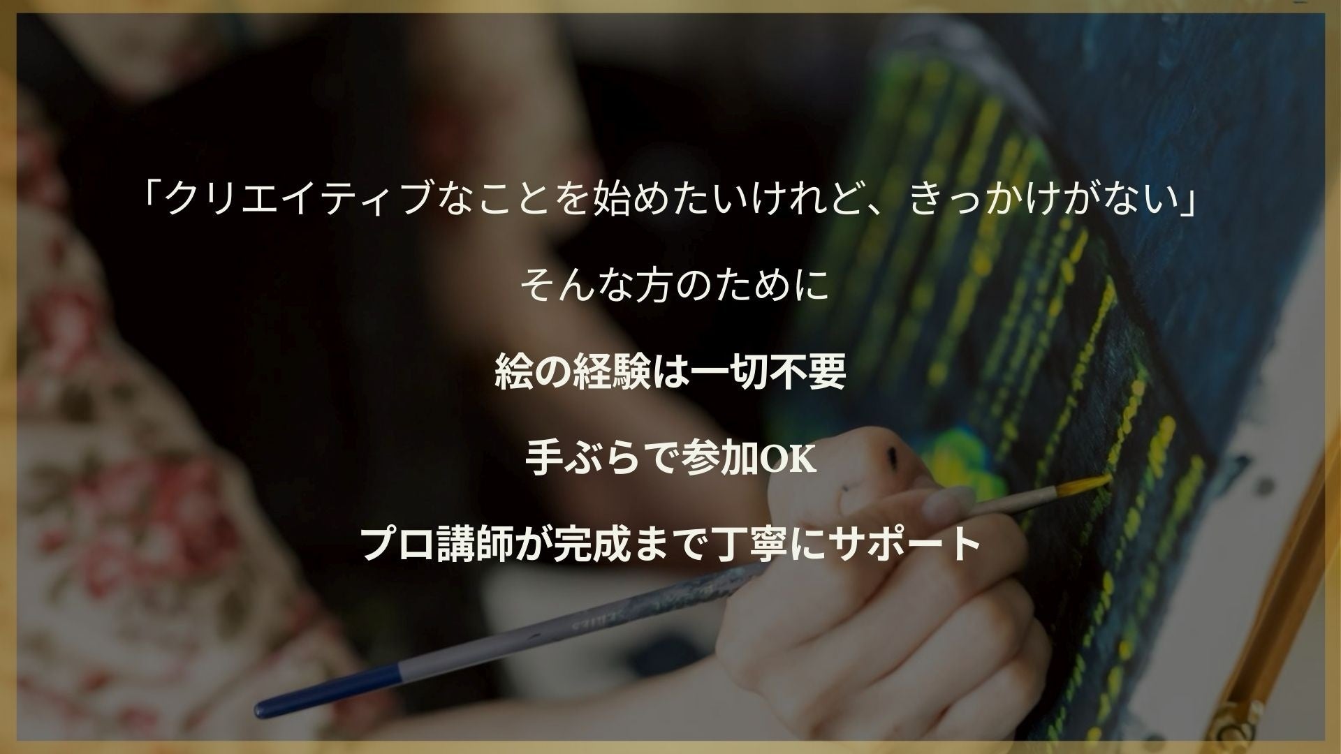 本イベントでは、ART & WINE BAR NAGOYAのプロ講師が丁寧にレクチャーし、初めての方でも必ず名画が完成する内容となっております。絵を描いたことがない方でも安心してご参加いただけます。