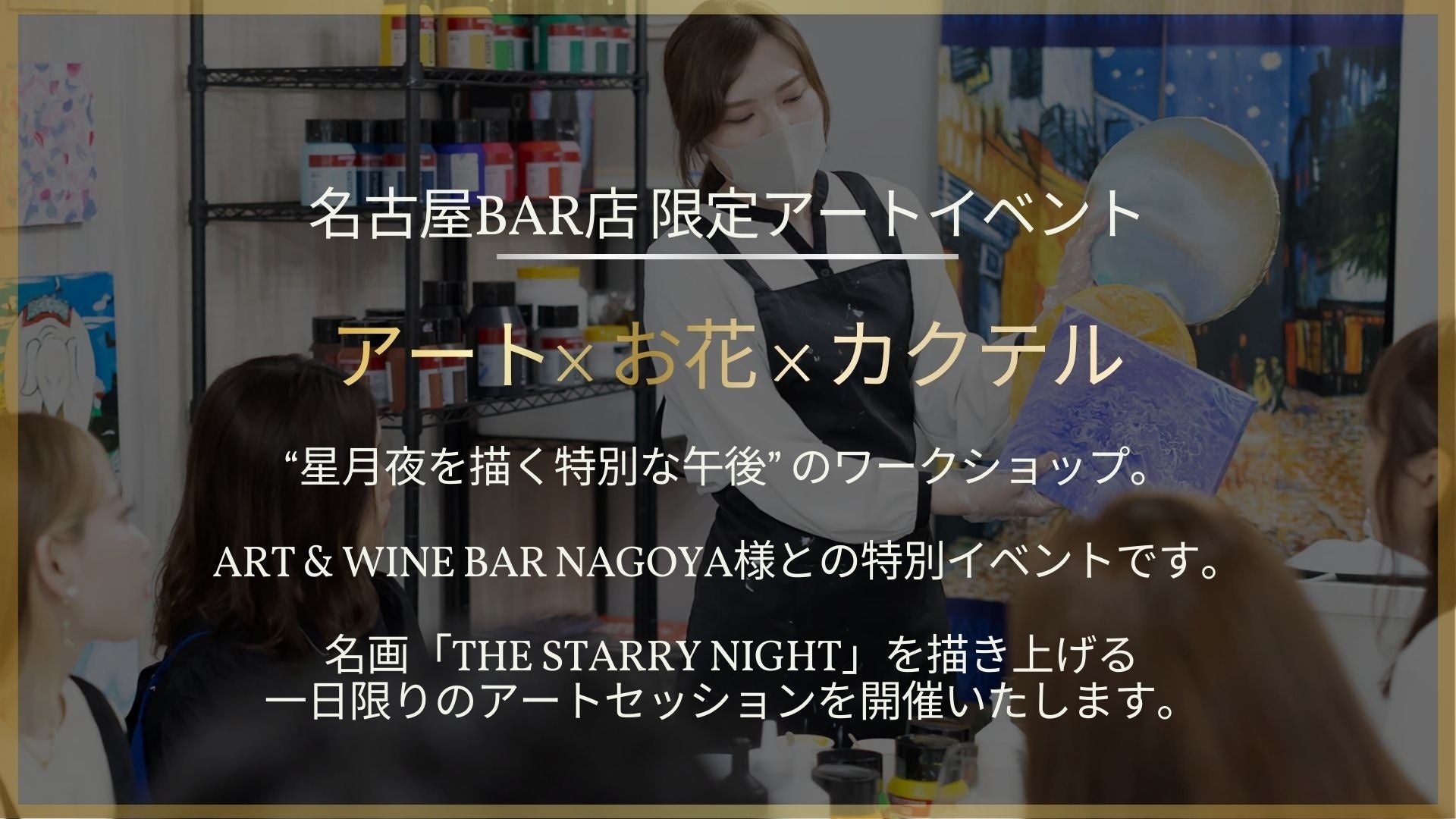 このたび、ART & WINE BAR NAGOYA様のご厚意により、EBISU FLOWER PARK 名古屋店にて、特別なアートペインティングイベントを開催できる運びとなりました。