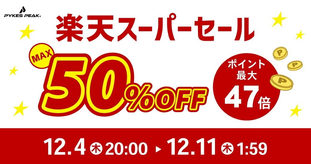 Fun Standard株式会社(本社:福岡県大野城市、代表取締役:大屋良介/笹森広貴)が展開するブランド PYKES PEAK(パイクスピーク) は、楽天市場にて開催される 楽天スーパーSALE に参加いたします。
