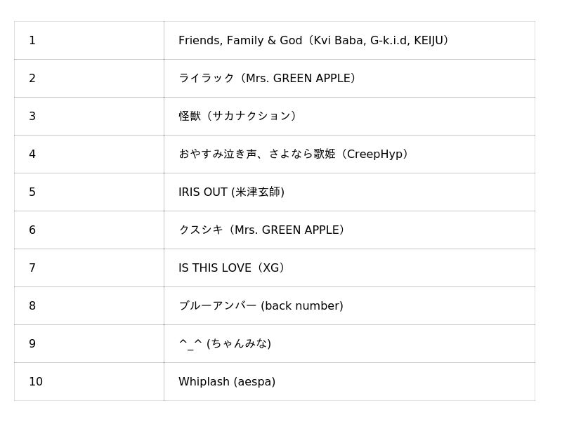 7. Tinder上で話題になったSpotify Songs (日本国内アーティスト)