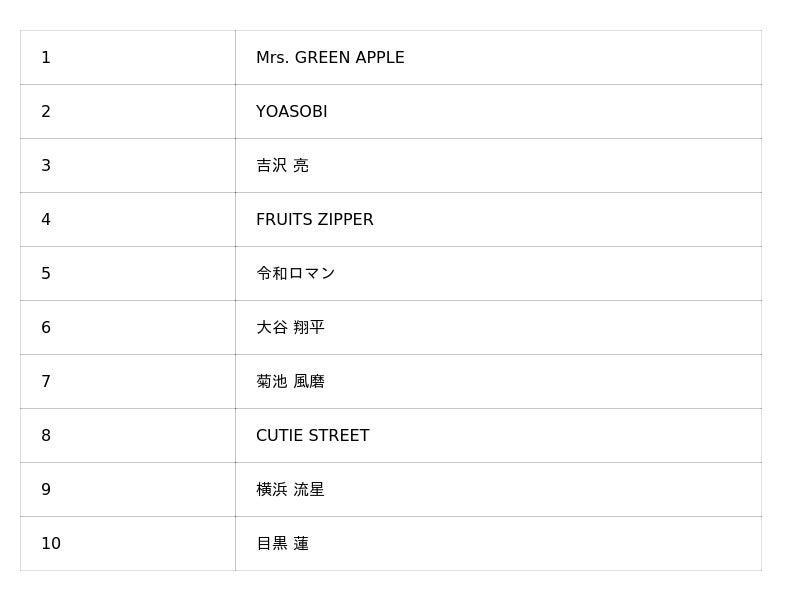 8. Tinder上で話題になったSpotify Artist(日本国内アーティスト)