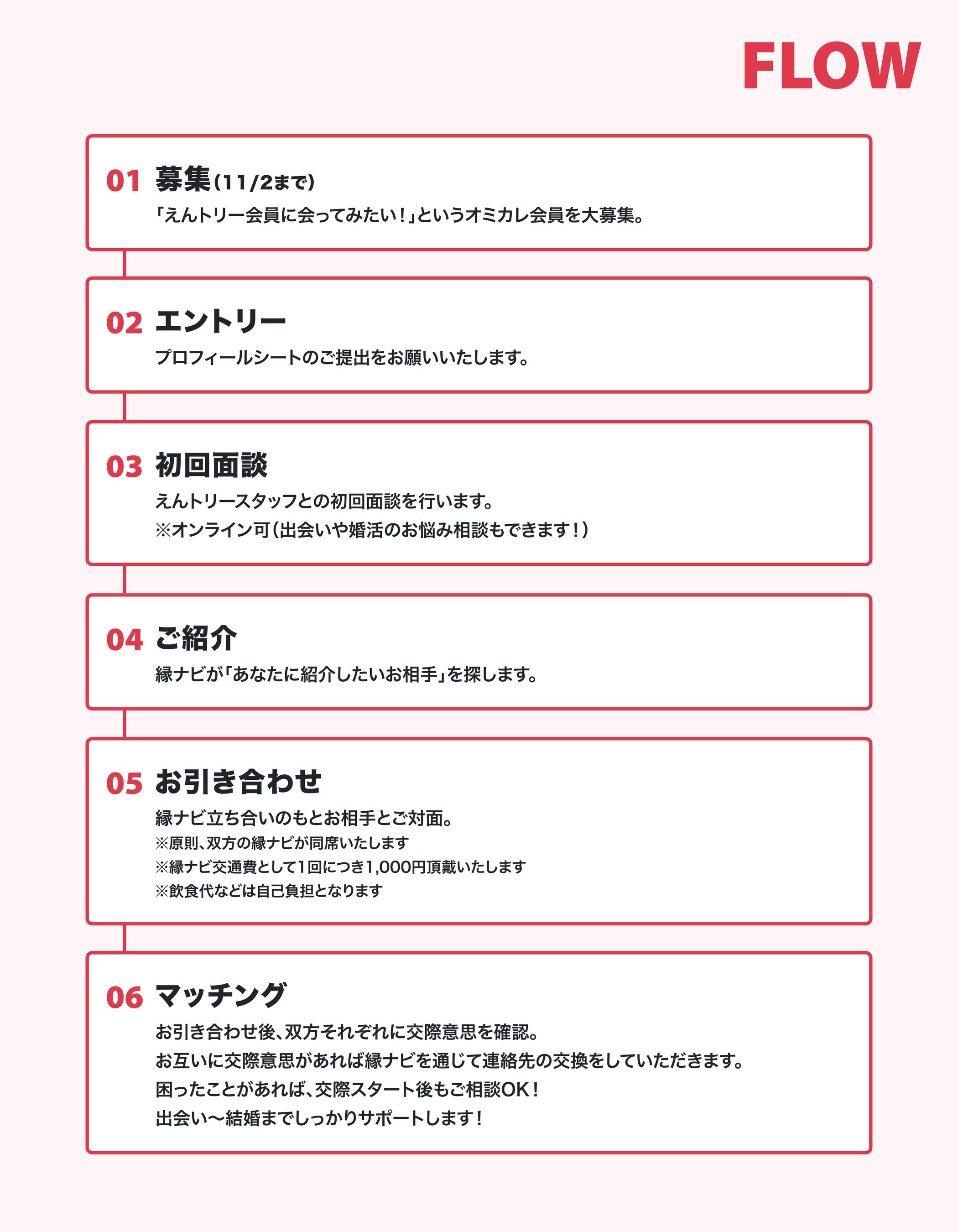 本企画は現在も会員同士のキューピッド役となる「えんトリー」の縁結びナビゲーターが、応募者にぴったりのお相手をご紹介しています。