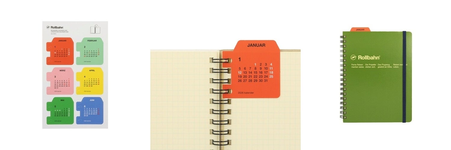 2026年1月~12月までのカレンダーを配した紙製のブックマークカレンダー。リングタイプのロルバーンポケット付メモとロルバーンダイアリー、ロルバーンフレキシブルに対応しています。リングに取り付けておくことですぐに日付が確認できます。メモページを月ごとに分けるインデックスとしての使い方もおすすめ。