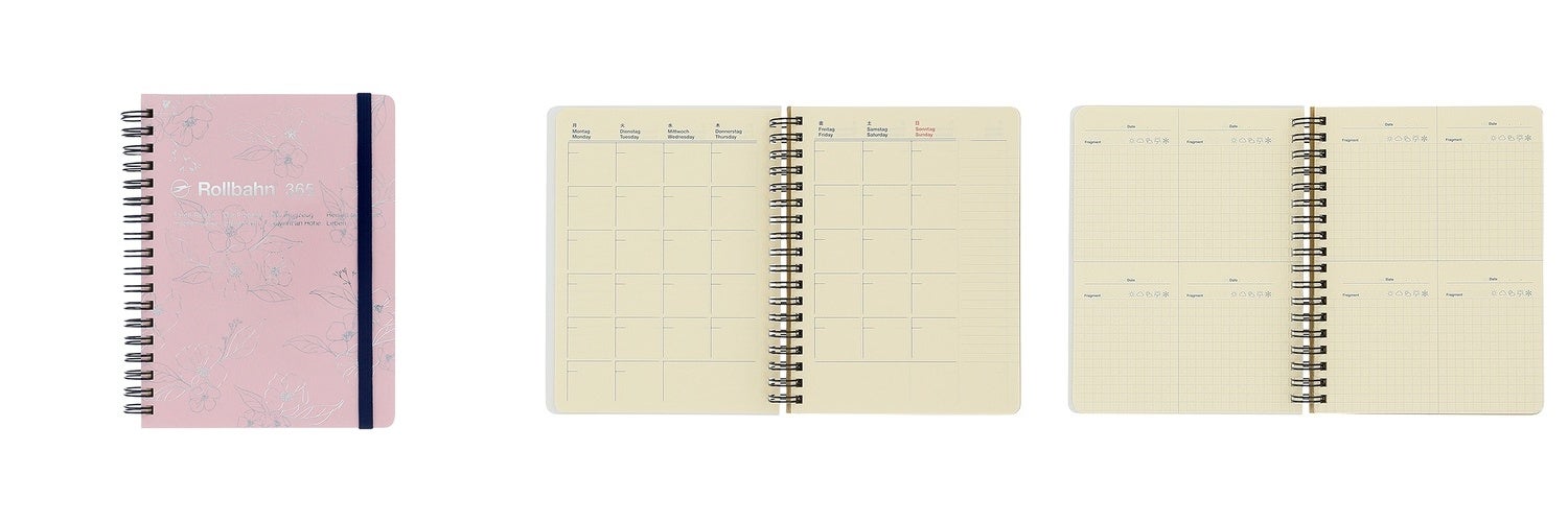 日付を自由に書き込め、好きな時に使い始めることができるロルバーンフリーダイアリー。日々の予定管理だけでなくライフログや趣味の記録にも活躍します。マンスリーページのほか、ジャンル分けできるリストや年間予定が記入できるジャバラカレンダー、ブロックタイプで見開き1週間のウィークリーページが1年分ついています。