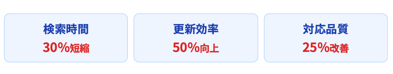 FAQの再構築により、情報検索時間は30%短縮、対応品質は25%向上する結果に。