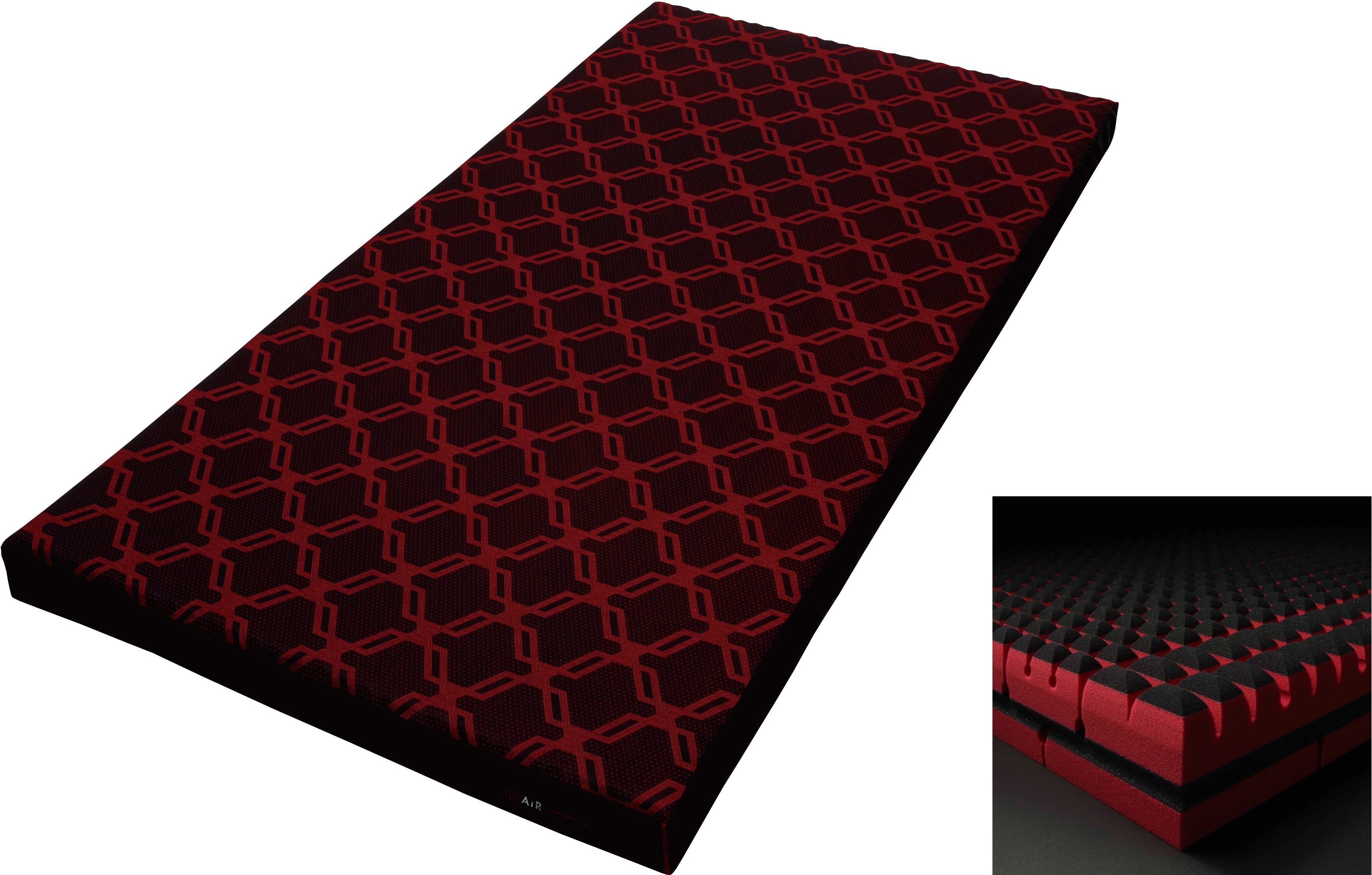 [エアー]は、明日のより良いパフォーマンスを発揮するために、最新の睡眠科学を取り入れたコンディショニング・ギアシリーズです。点で支えて質の高い睡眠へと導く[エアー]マットレスは、クッション性に優れたウレタン素材の表面を凹凸構造にすることで、ボディラインに合わせてマットレスがなめらかにフィットし、体圧を分散します。さらに、ベース部が身体をしっかり受け止めて自然な寝姿勢をキープし、寝返りもスムーズにできます。