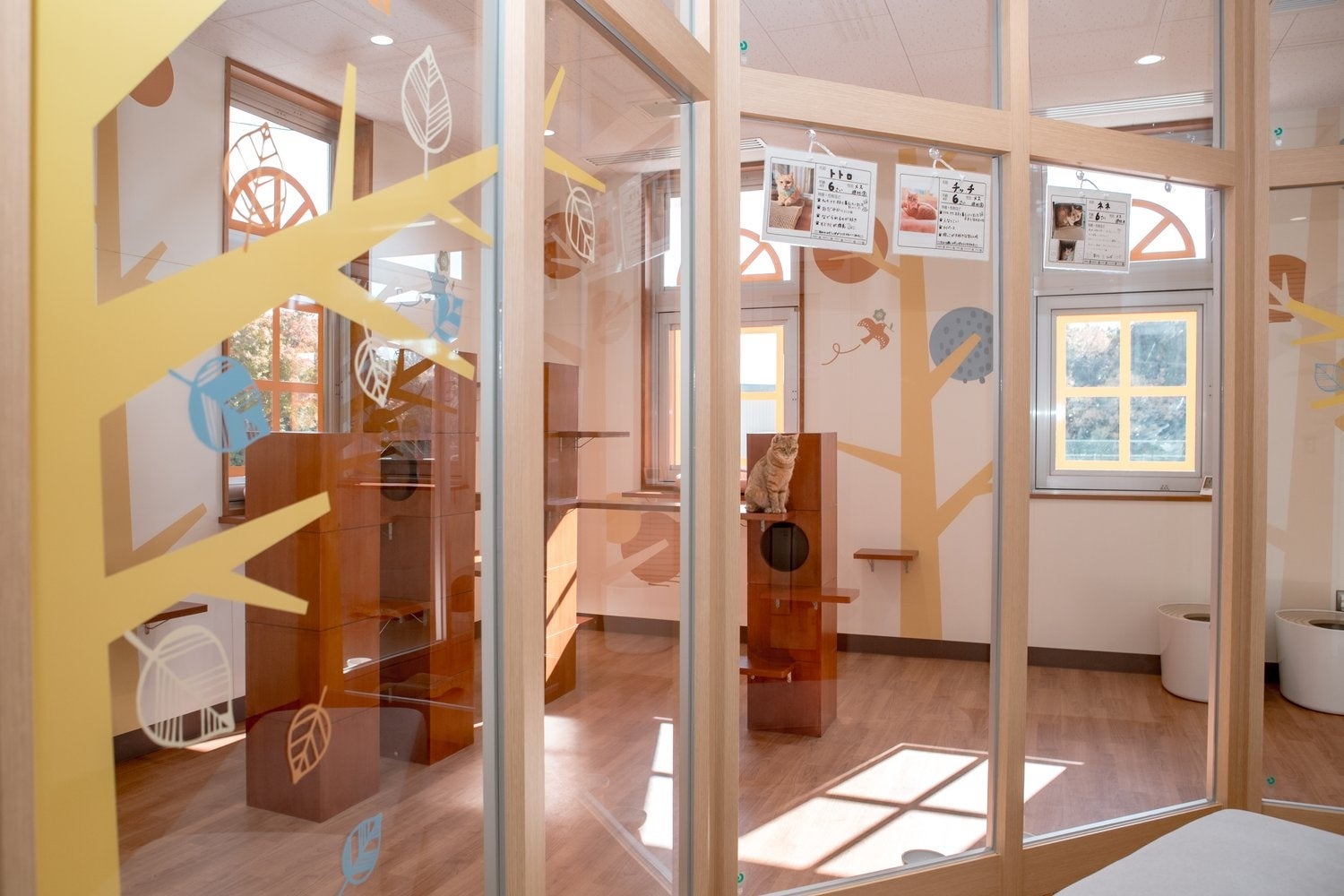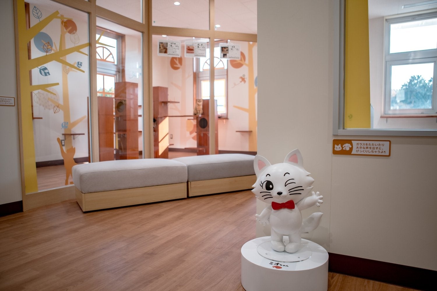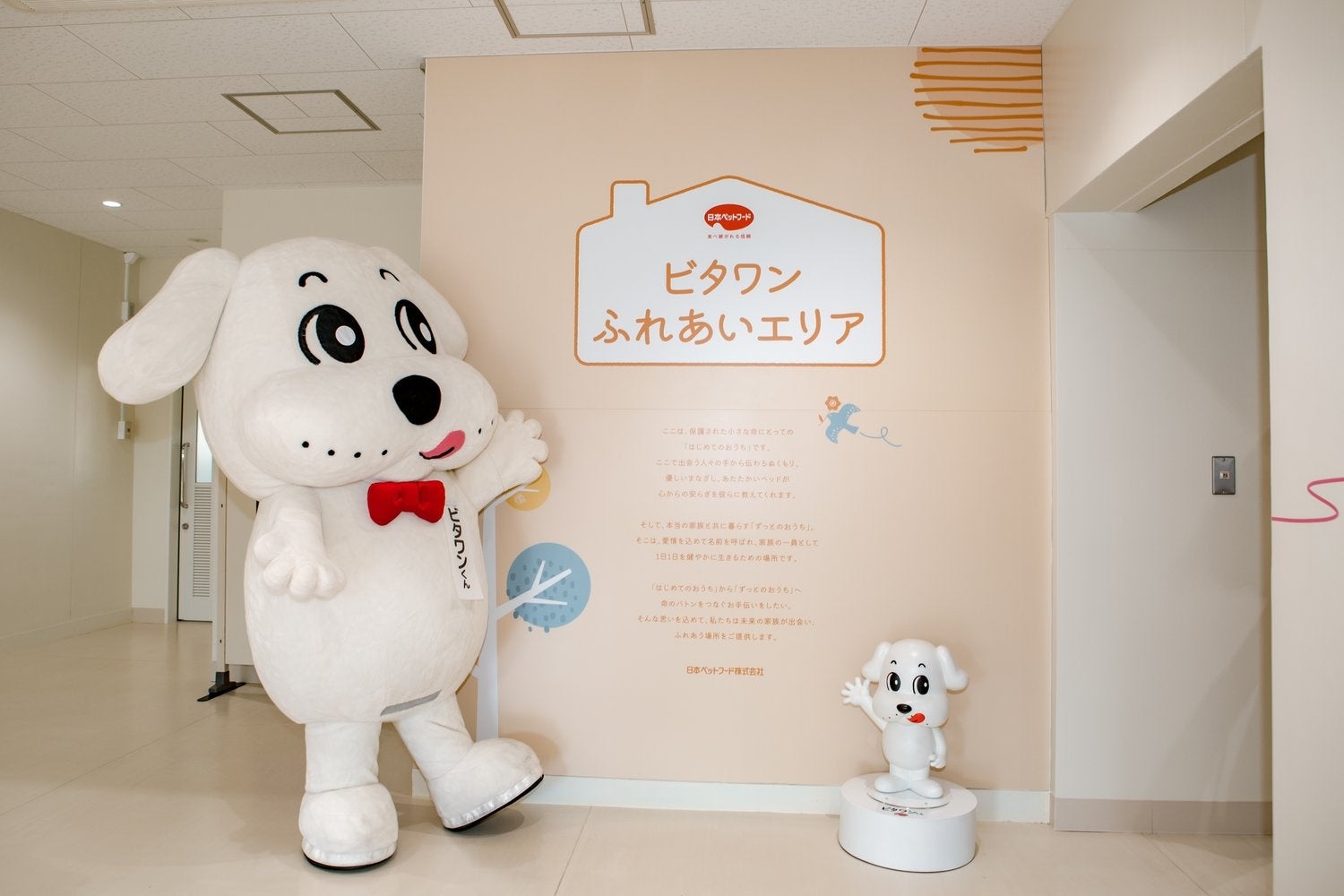 施設内の装飾には、日本ペットフードの公式キャラクターである「ビタワンくん」と「ミオちゃん」を活用し、子どもから大人まで親しみやすいデザインを採用しました。キャラクターを通じて、小さな命の大切さを楽しく伝える工夫を施し、地域住民や利用者の皆さまにとって心温まる施設づくりを実現しています。